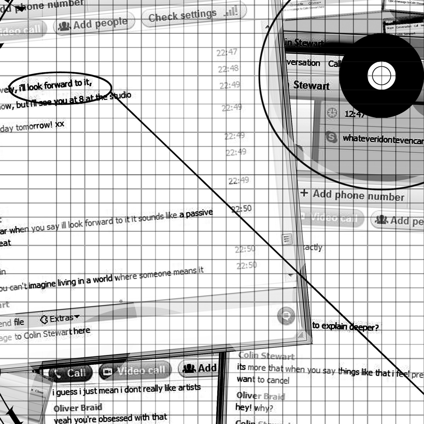 As one element of his contribution to New Work Scotland Programme 2011 Oliver Braid is working alongside a variety of sound and music makers to produce new audio works in response to a set score. The original score takes the form of an undignified Skype conversation between Oliver Braid and a friend which presents an argument around the concept of expectation. This argument also inspired Oliver’s other contributions to the programme this year, ‘I’ll Look Forward To It: A Visual Essay on Expectation’, his design for the 2011 Christmas Window at Collective and a live music event taking place at Collective on 15th December.