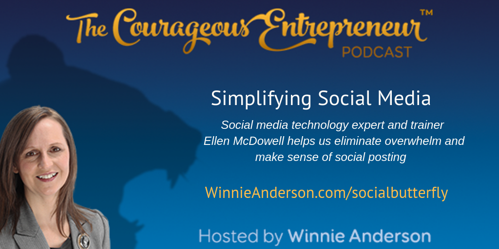 In this episode of the courageous entrepreneur show Ellen McDowell, the social butterfly, dispels some myths, simplifies things, and helps you get your head around what you should post and where to post.