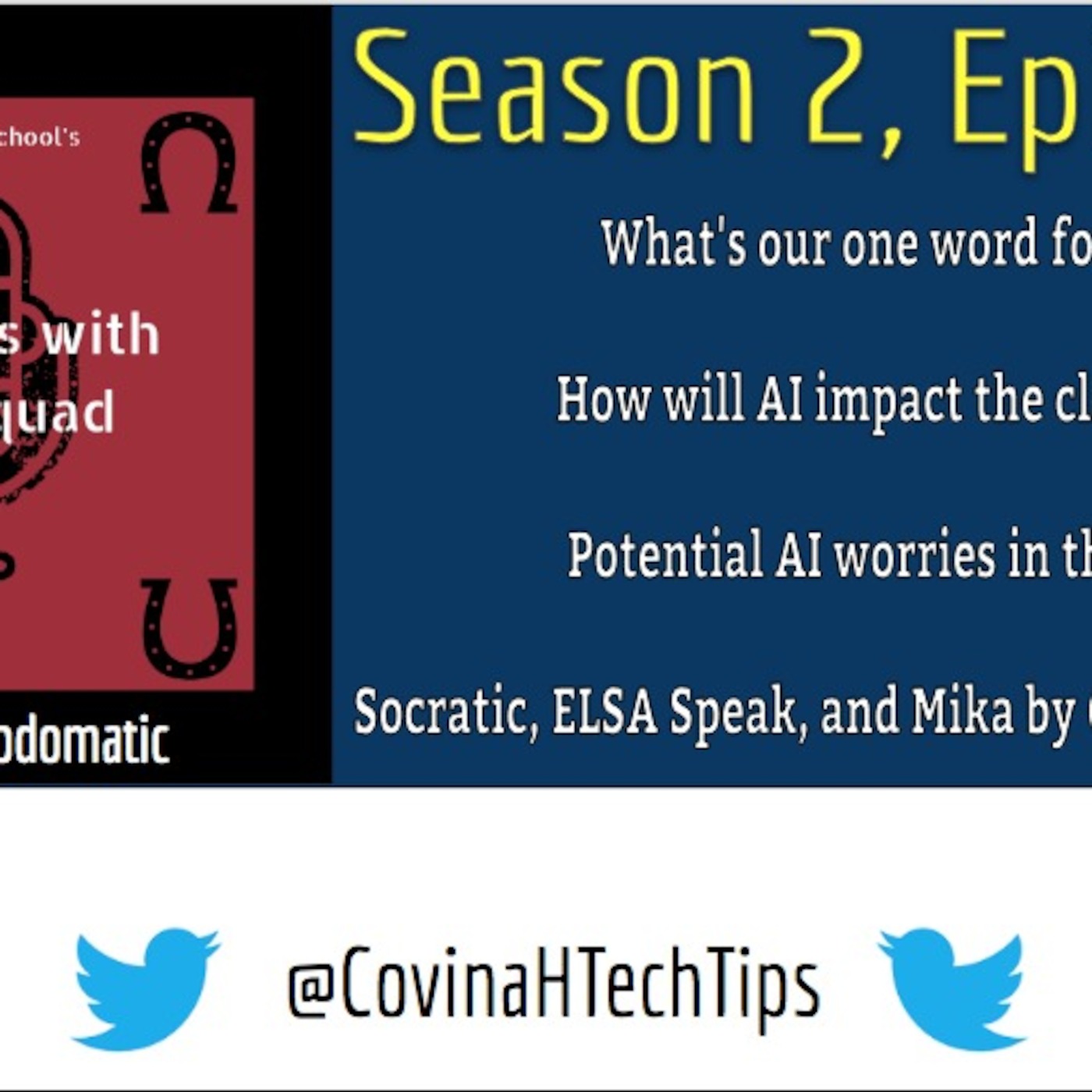 Gabe and Kayla come back with the hot topic AI. They talk about their one word for 2019, and interview Ms. Gamez and Covina High's students. They also suggest three AI apps that can be used in the classroom.