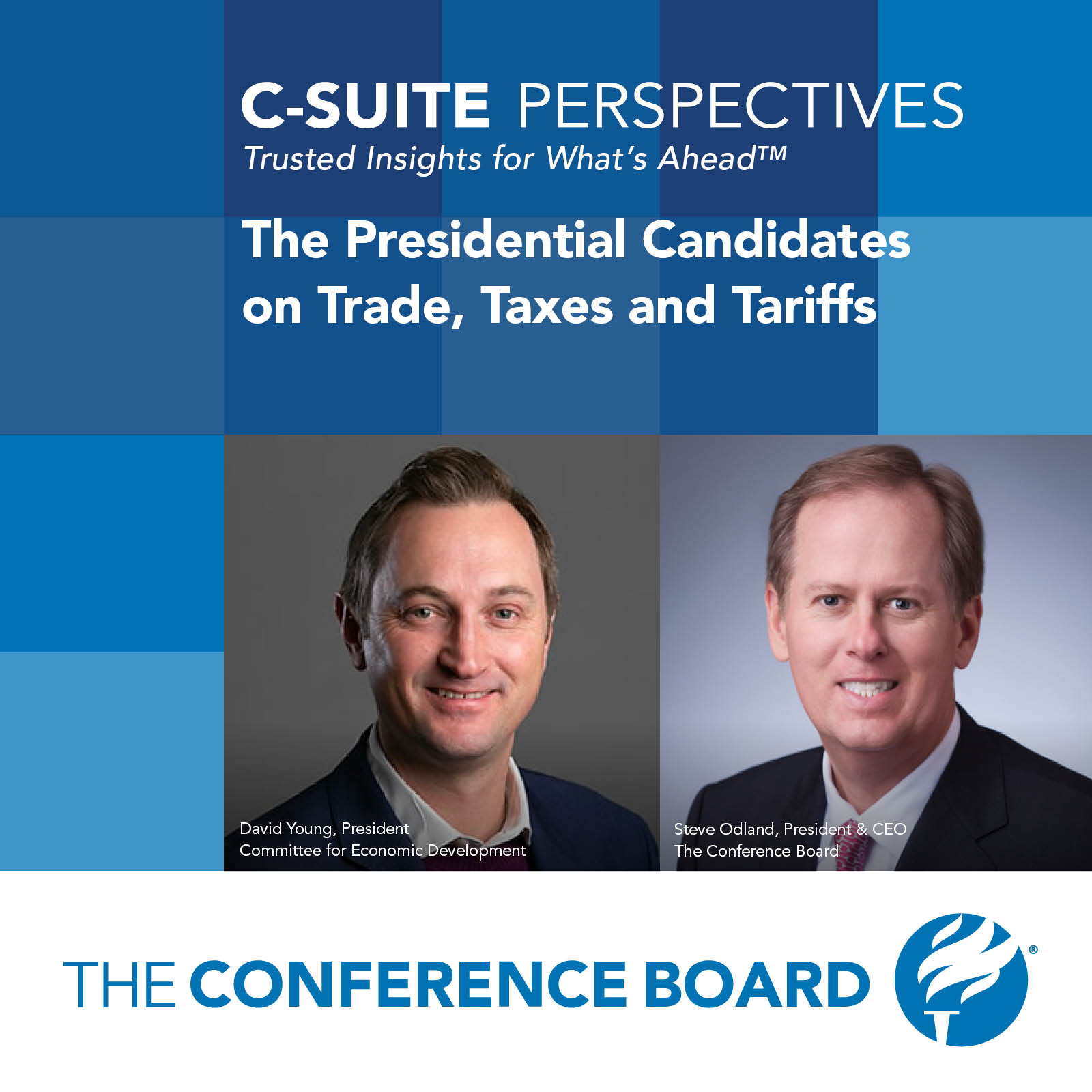 Join Steve Odland and guest David Young, President of the Committee for Economic Development, the public policy center of The Conference Board (CED), as they hold a nonpartisan discussion on the presidential candidates’ positions on trade, taxes and tariffs.