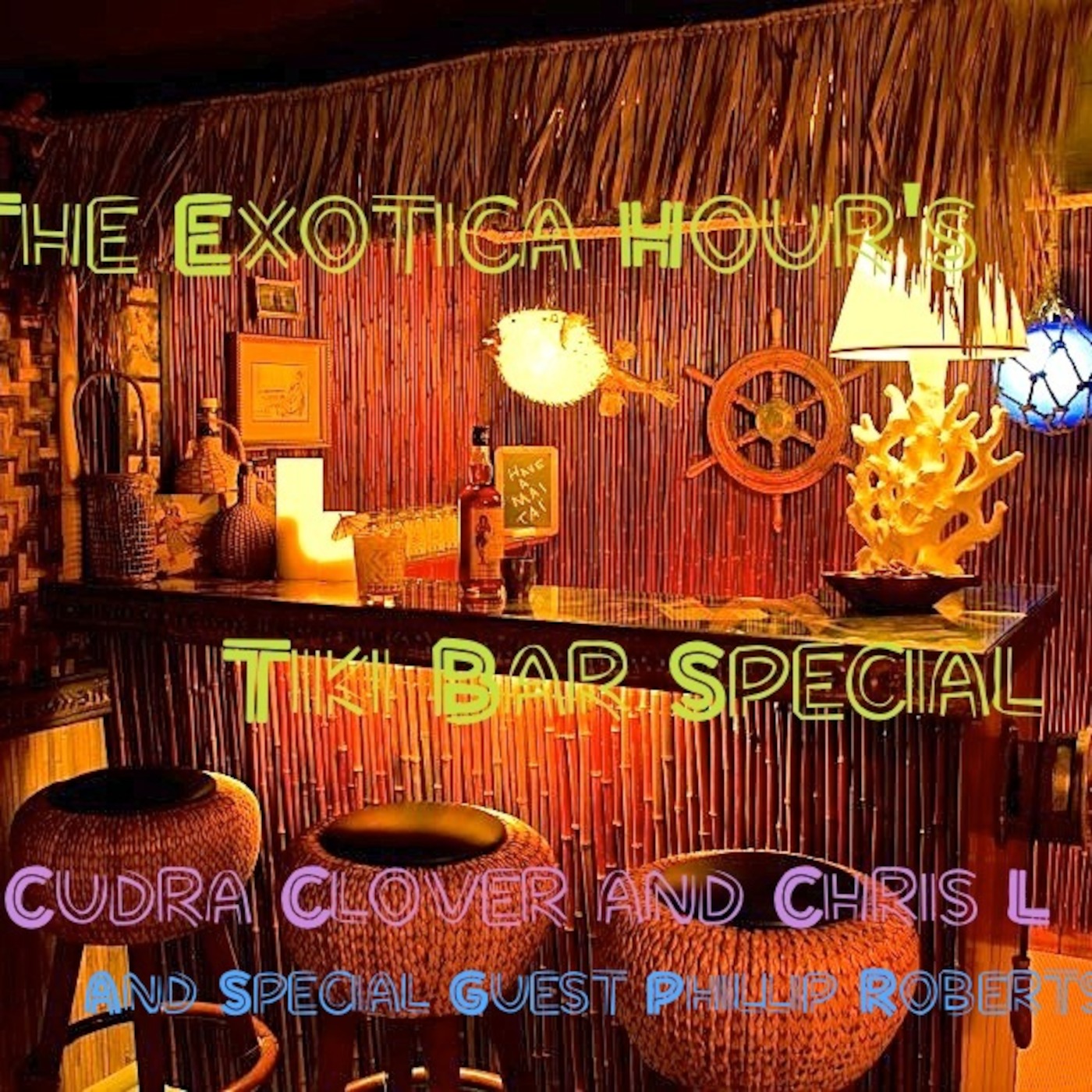 Welcome Exotica Fans to The Exotica Hour's Tiki Bar Special - a show of music catered to listening to whilst in the tiki bar of your dreams! I'm dedicating this show to Brent over at Lumeria Hotel who is highly inspired to manifest a tiki bar which I hope to help him create! We desperately have need of a tiki retreat over here on this side of the island!! Go Brent! Also to Gary Lawrence and his beautiful home tiki bar, The Taki Tiki Room - represented in our cover photo. If you're in the Chicago area - I hear he makes a mean Mai Tai.... Friend Taki Tiki Room on FB. We also have a quick little sneak preview interview from Phillip Roberts author of the fabulously kitchy book Waikiki Tiki. Find it at www.waikiki-tiki.com. Also - if you'd like to find out more information about Waitiki 7 and The Hawaii Youth Symphony event go to: http://hiyouthsymphony.org