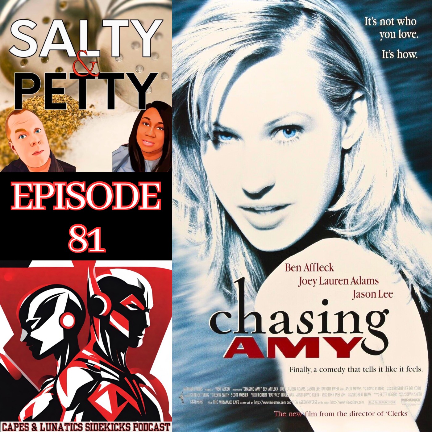 Welcome back to Salty & Petty! For this episode Phil and Lilith do a review of the 1997 movie Chasing Amy, share their thoughts on the movie, discuss Ben Affleck vs Matt Damon, Superman vs Hulk, and much MORE!
