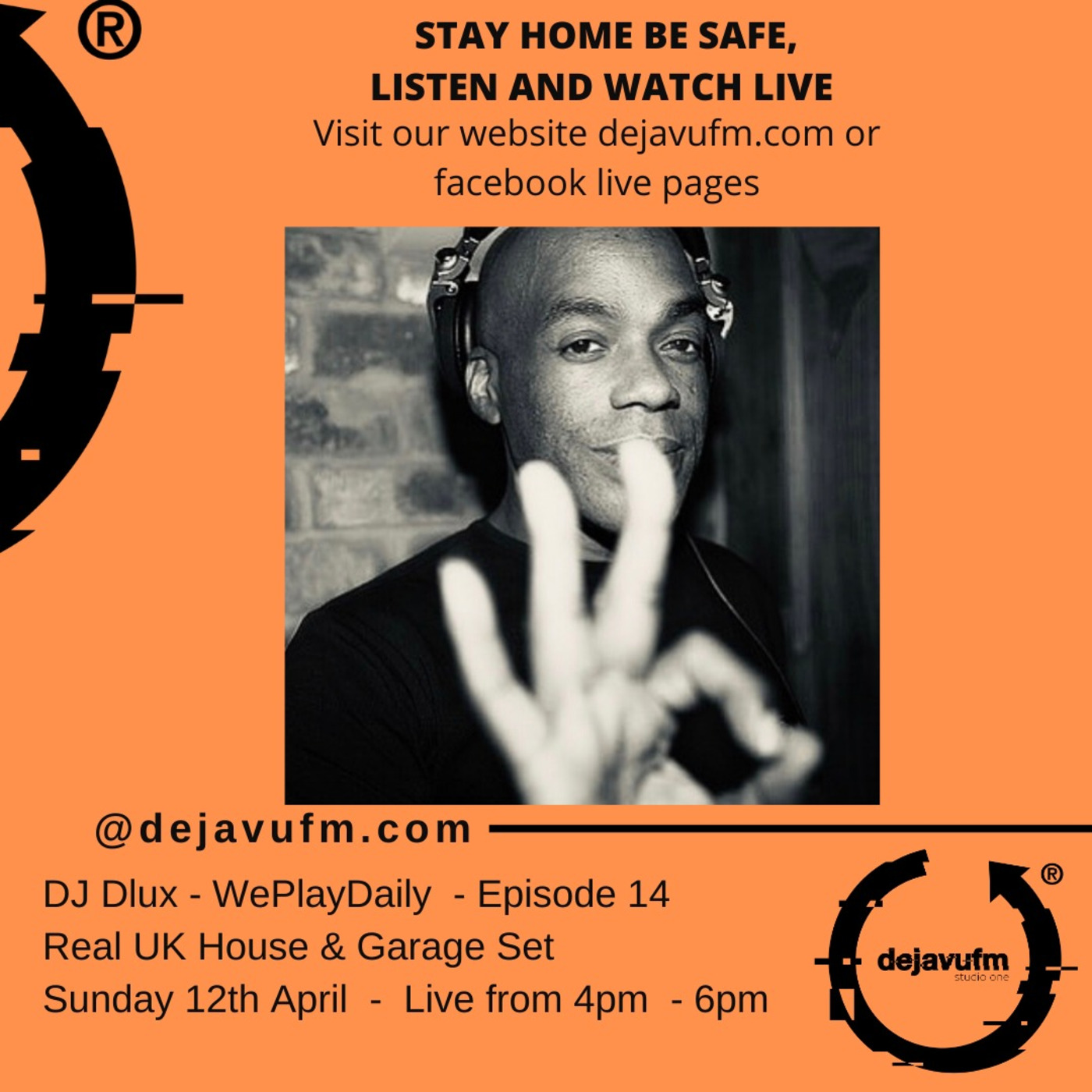 DJ DLUX - WePlayMusic Episode 381 - (WPD14) UK House & Garage Set - 12/04/20. Join DJ Dlux holding things down daily whilst the UK is on lock down, playing various genres to keep you entertained on www.dejavufm.com - Follow @OriginalDJDlux