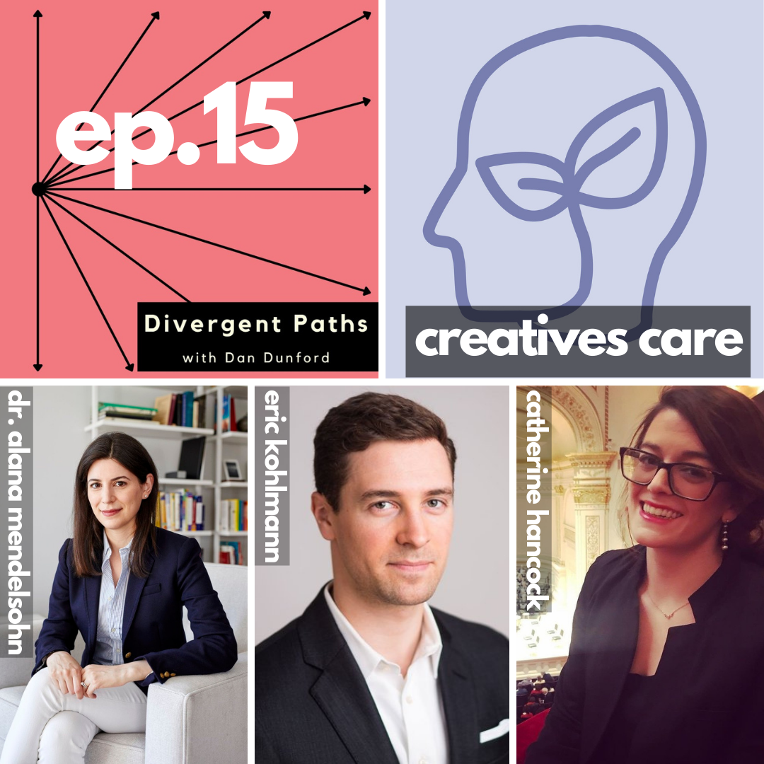 Mental health care is so vital in today's world. But there are very specific obstacles that musicians and artists face when trying to get help for themselves. Enter Creatives Care, an organization, whose mission is connecting artists with affordable mental health care providers with experience and/or interest in serving artists. The 3 founders, Dr. Alana Mendelsohn, Columbia neurobiologist and psychiatrist, Eric Kohlmann, venture capitalist and entrepreneur, and Catherine Hancock, Marketing Expert and former opera singer, all join me to have a great conversation about the importance of mental health care for artists, how their organization works, and how to take advantage of the service they are offering.