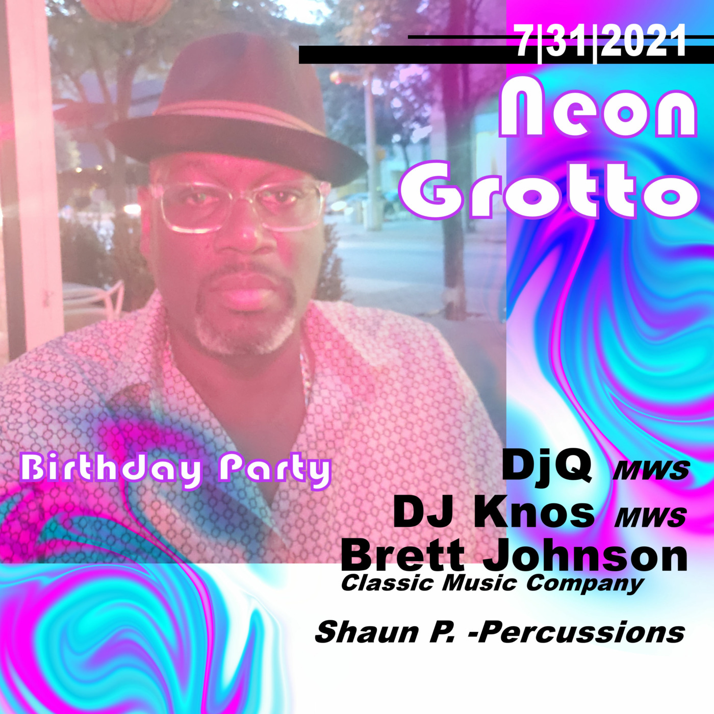 Opening set at Neon Grotto, I wanted the night to start of sexy and smooth before all the debauchery begins. I had Shaun P. accompany me on drums but of coarse I didn't think to mic him up until after the fact, good job on my part.