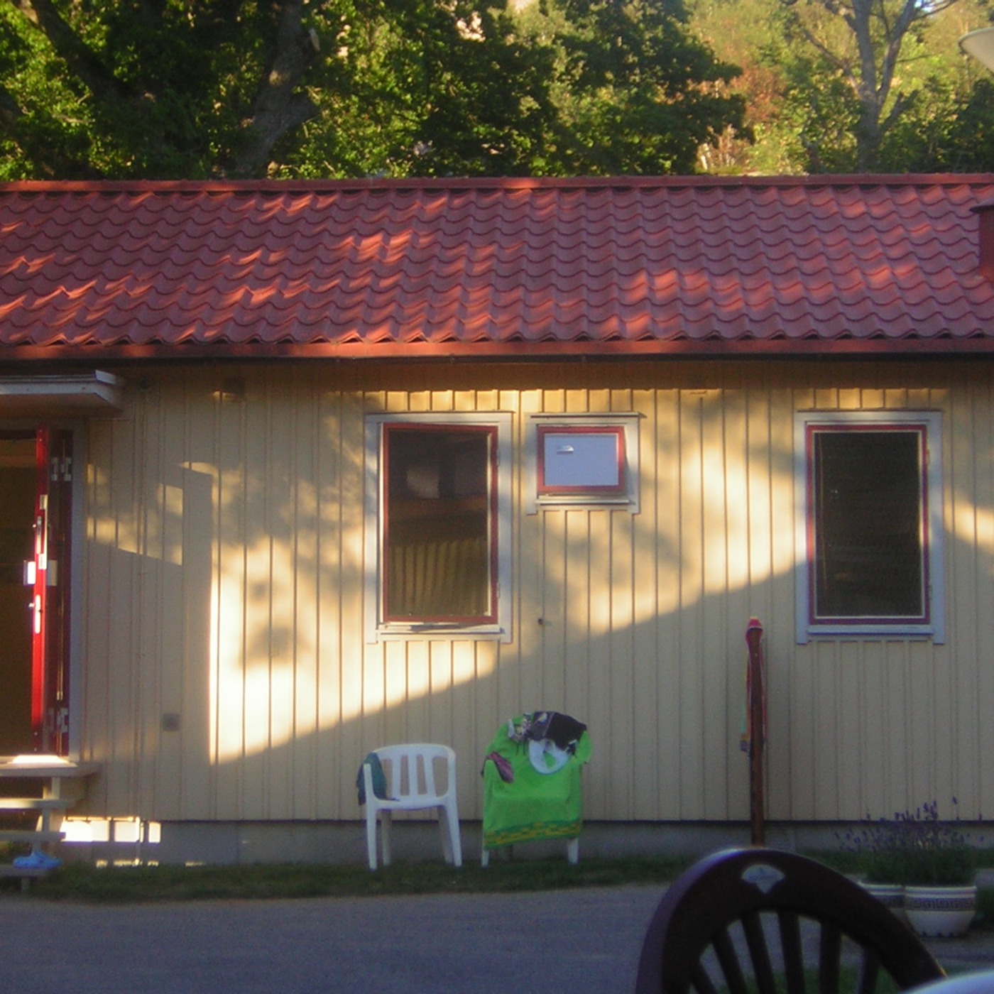 Vandrarhemmet består av baracker och som alltid, när det är vackert väder, åt vi ute vid ett bord på sidan av baracken. En bit längre bak åt två par, glada av vin och god mat. Plötsligt skrek en av damerna: ”Nu börjar föreställningen”. Vi förstod ingenting, men vi riktade blicken mot ett fönster i grannbaracken. Och då förstod vi. Det var fönster i duschen, och när det var sol, kunde man se personerna som duschade utan att de visste att det fanns åskådare…