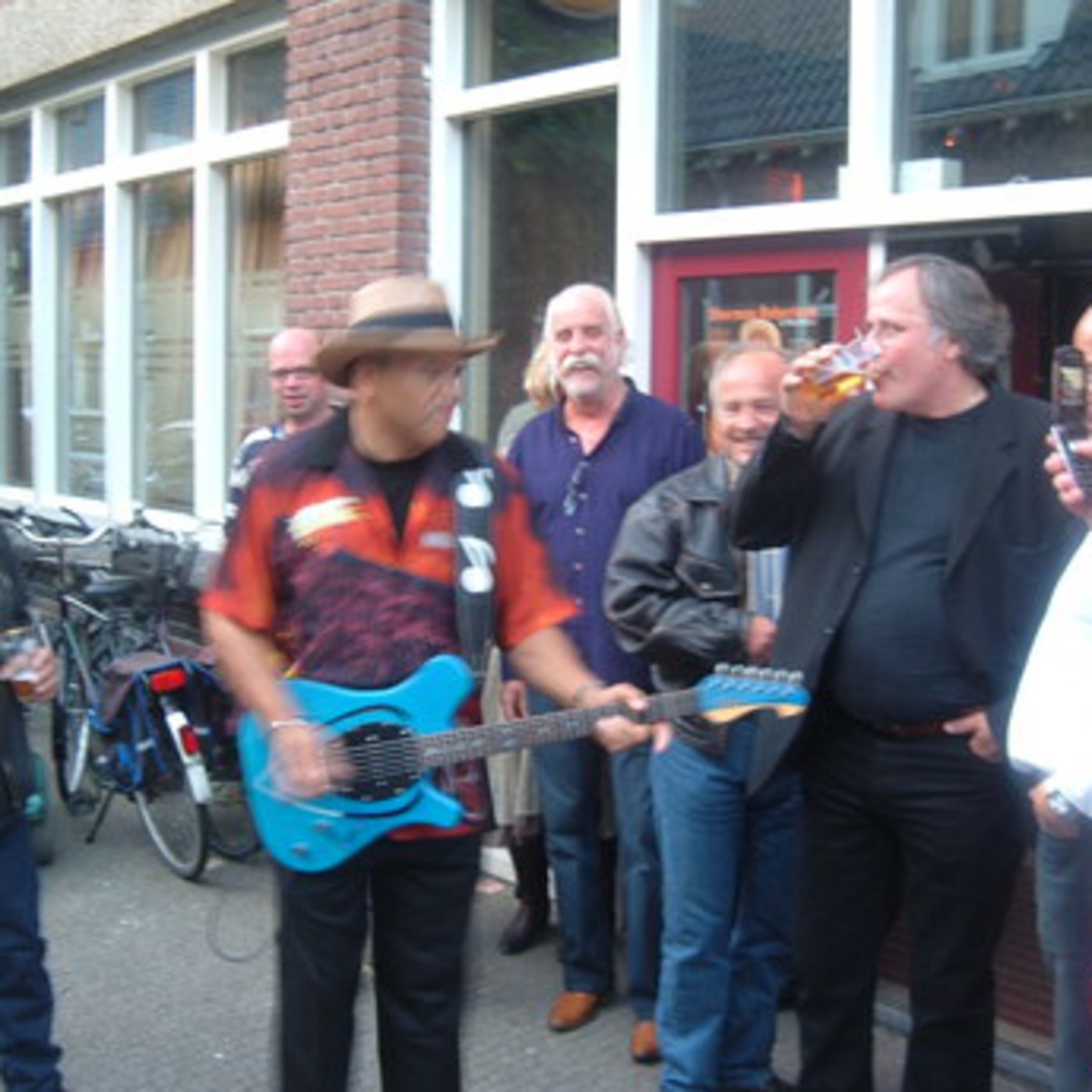 Picture by myself during "unplugged" walkin' blues solo by Sherman outside Bluesclub XXL Wageningen, Netherlands