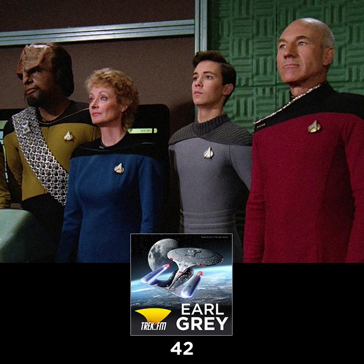 Uniforms & Wardrobe in TNGFans may debate how much the TNG crew evolved over their many missions, but there is no question that their uniforms evolved from the initial television pilot "Encounter at Farpoint" to the last feature film, Star Trek: Nemesis. From the four kinds of Starfleet uniforms worn by the 24th-century Enterprise officers and crew to the surprisingly skimpy and full-of-ruffles civilian clothes, Phillip Gilfus, Daniel Proulx, and Darren Moser discuss skants, dress uniforms, and alien costumes in this fashion-forward episode of Earl Grey.