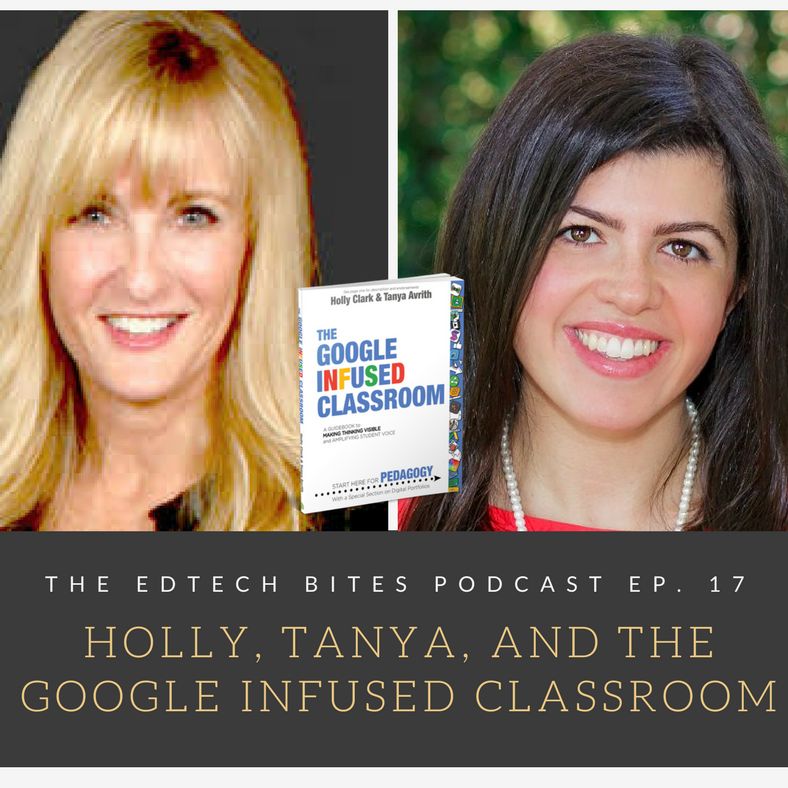 In episode 17, I chat with Holly Clark and Tanya Avrith to discuss their book, "The Google Infused Classroom". This is a great conversation about how the book came to be, who the book is geared towards, and of course, international food. I have to say that this interview made me envision these two ladies as the female version of Dale and Brennan from Step-Brothers. Their energy and relationship is clear in this interview and it's easy to see why these two ladies wrote this book together. As an added bonus, they are offering a free copy of the book to two lucky listeners. All you have to do is tweet your thoughts of the episode using the hashtags #edtechbites and #infusedclassroom. They will randomly choose two lucky tweeters to receive this added bonus. Please check out Tanya's and Holly's blogs to learn more about them and what they can add to your PLN. Also, please leave a review of the EdTechBites podcast on Apple Podcast, Google Play, or whatever app/stream you use. Buen Provecho!