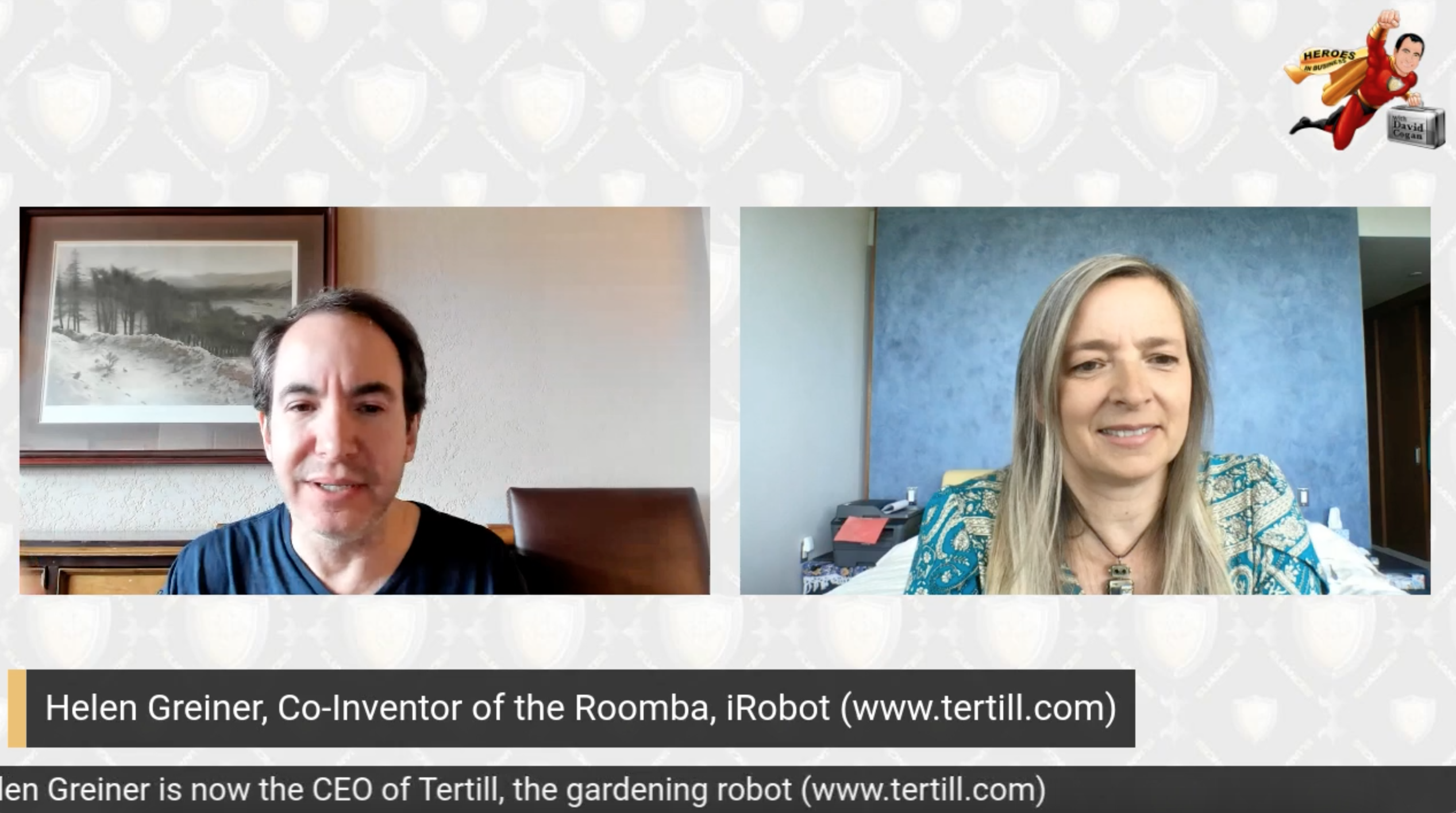 Helen Greiner, cofounder iRobot, CEO Tertill Corporation is interviewed by David Cogan host of the Eliances Heroes Show and founder Eliances entrepreneur community. www.eliances.comwww.tertill.com
