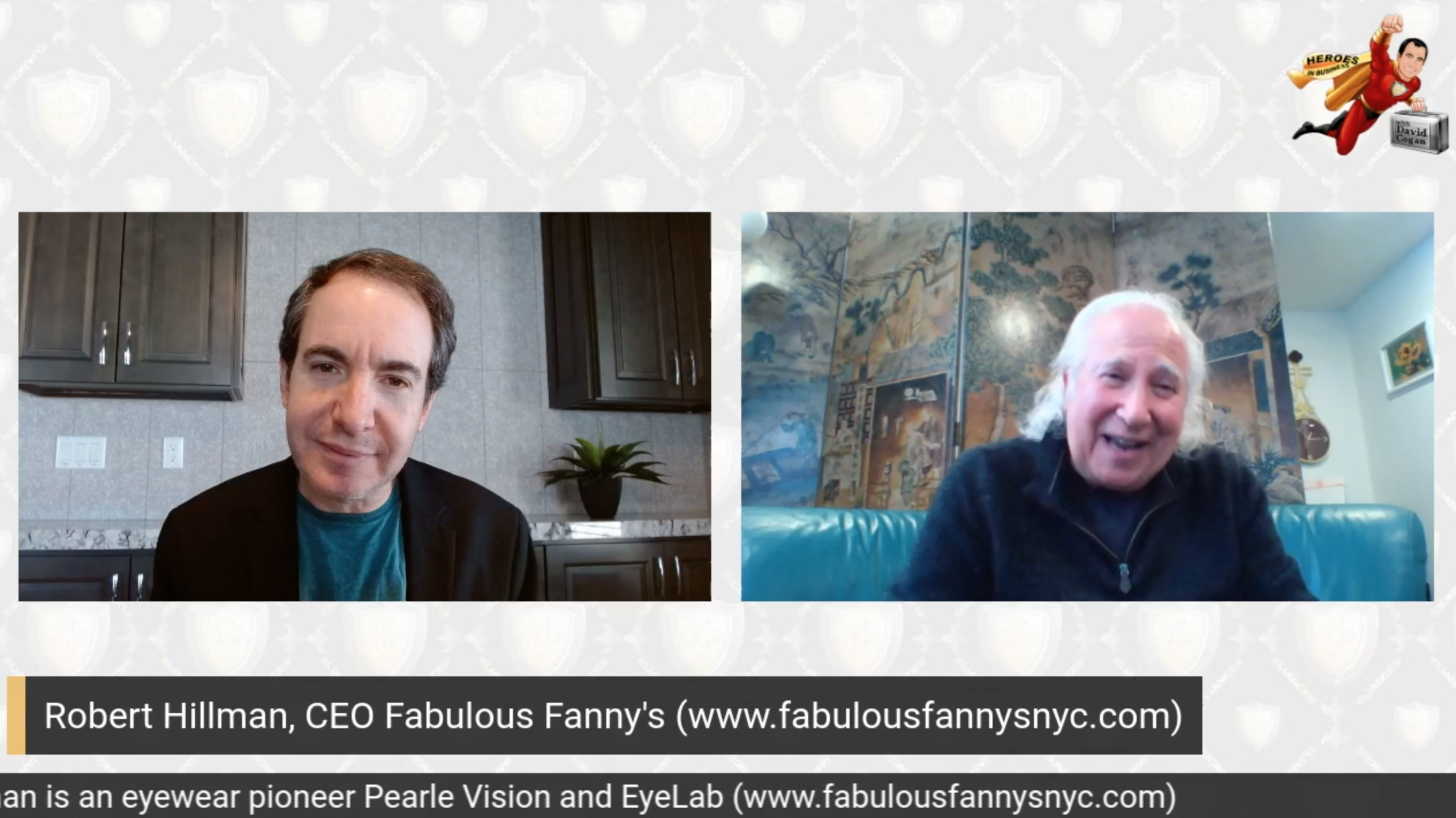 Good looking out. Robert Hillman, Pearle Vision eyewear pioneer EyeLab, Fabulous Fannys is interviewed by David Cogan famous host of Heroes Show and founder of Eliances entrepreneur community. www.eliances.comwww.fabulousfannysnyc.com