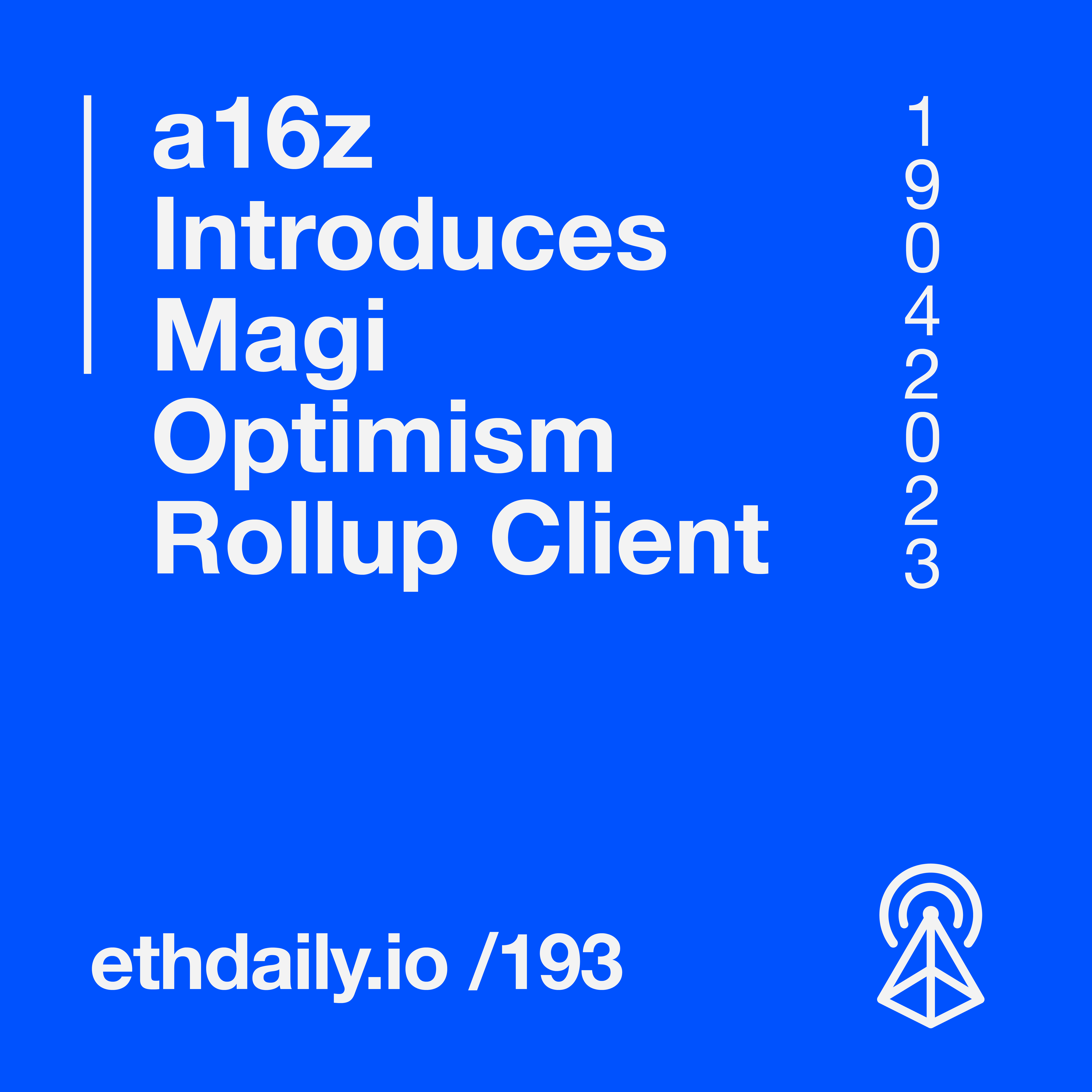 a16z introduces an Optimism rollup client called Magi. Zero MEV releases its API for querying MEV data. Jumper integrates opt-in bridge insurance. And Rainbow adds support for Ledger Nano X wallets. Read more: https://ethdaily.io/193