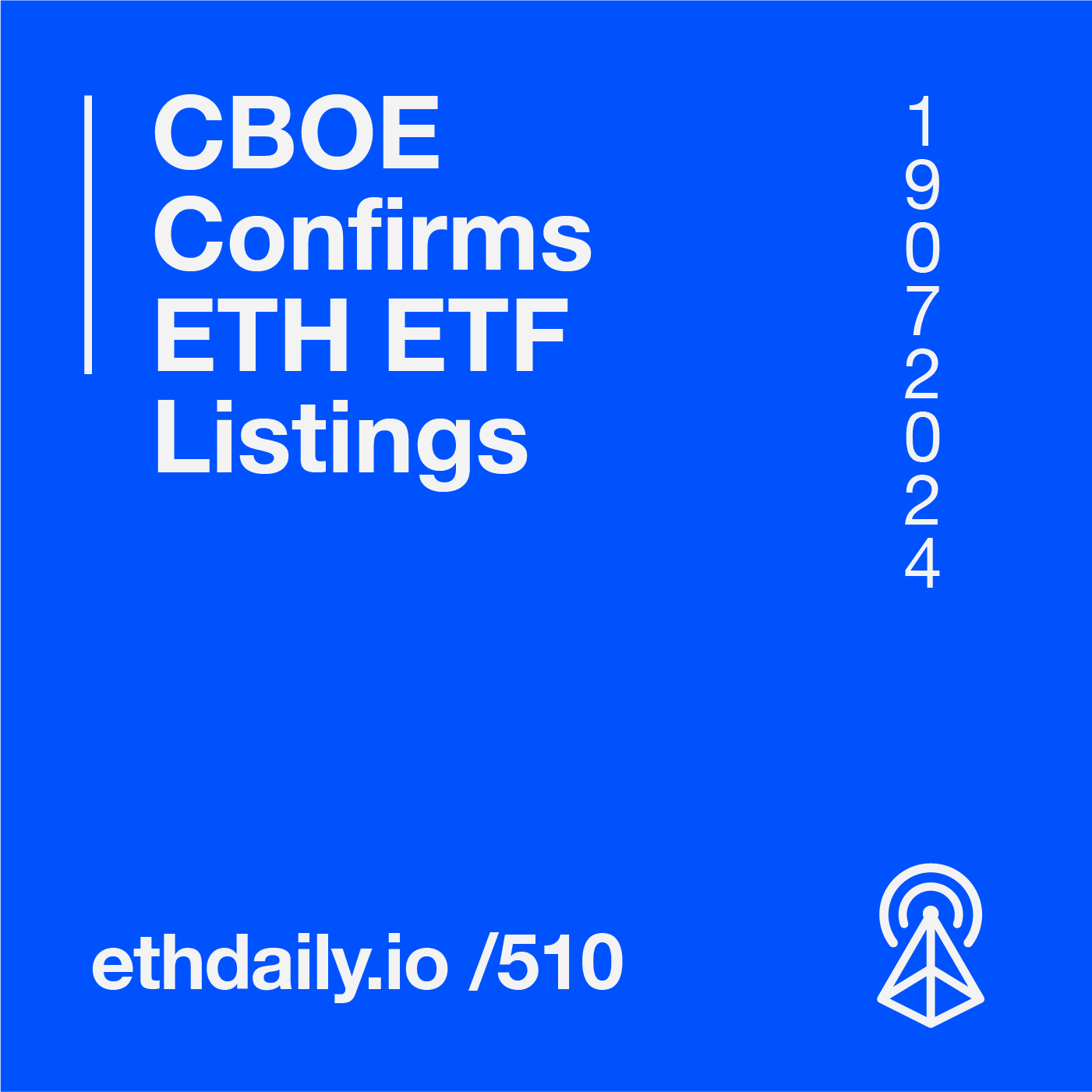CBOE confirms that trading for five Spot ETH ETF will launch on Tuesday. The Ethereum Foundation is hiring for a Protocol Support role. Avail announced its mainnet launch date. And applications open for the Superhack. Read more: https://ethdaily.io/510