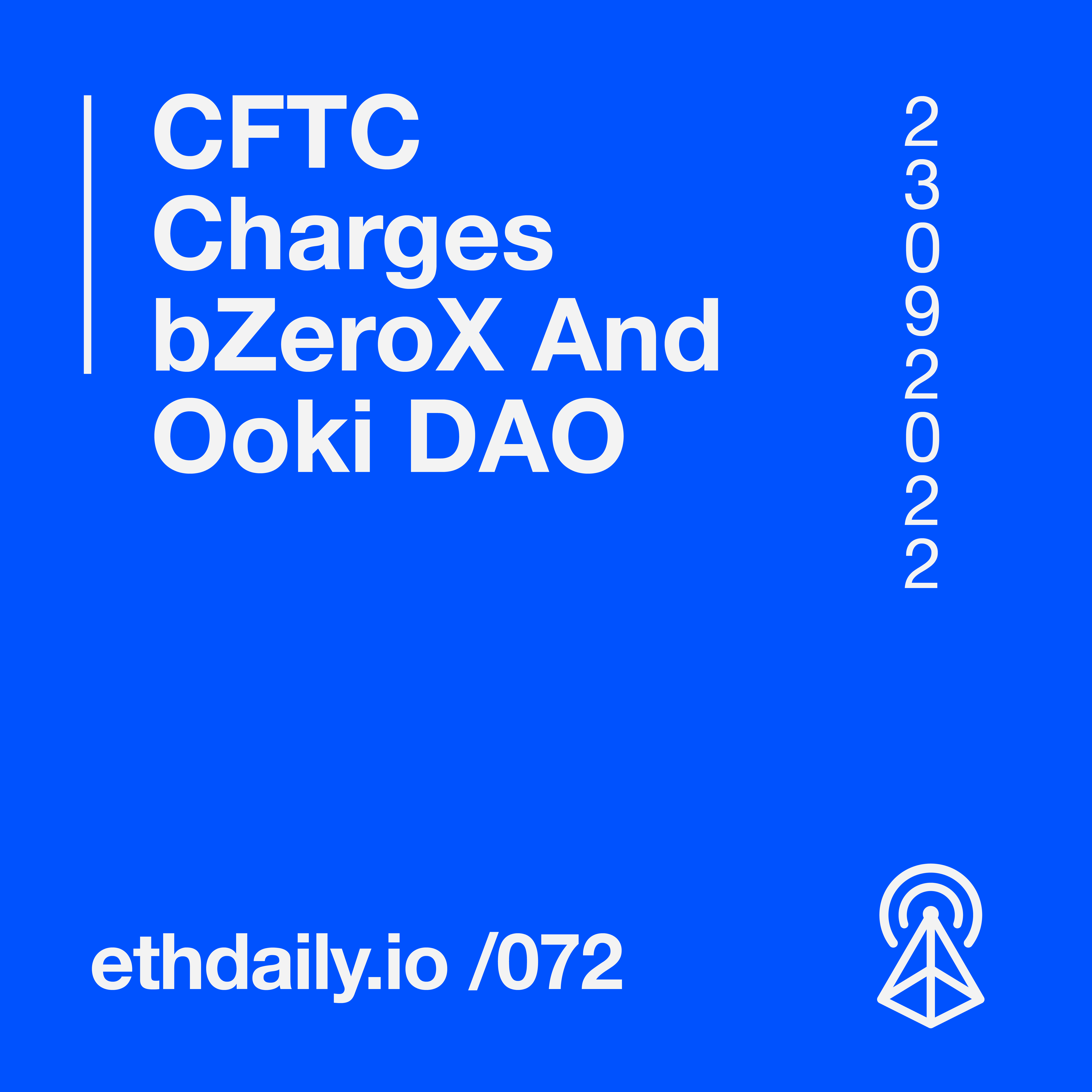 The CFTC files charges against bZx and Ooki DAO. Empiric Network develops an onchain yield curve. Lens Protocol announces a new moderation DAO. And eth.limo adds support for Arweave and IPFS. Read more: https://ethdaily.io/072