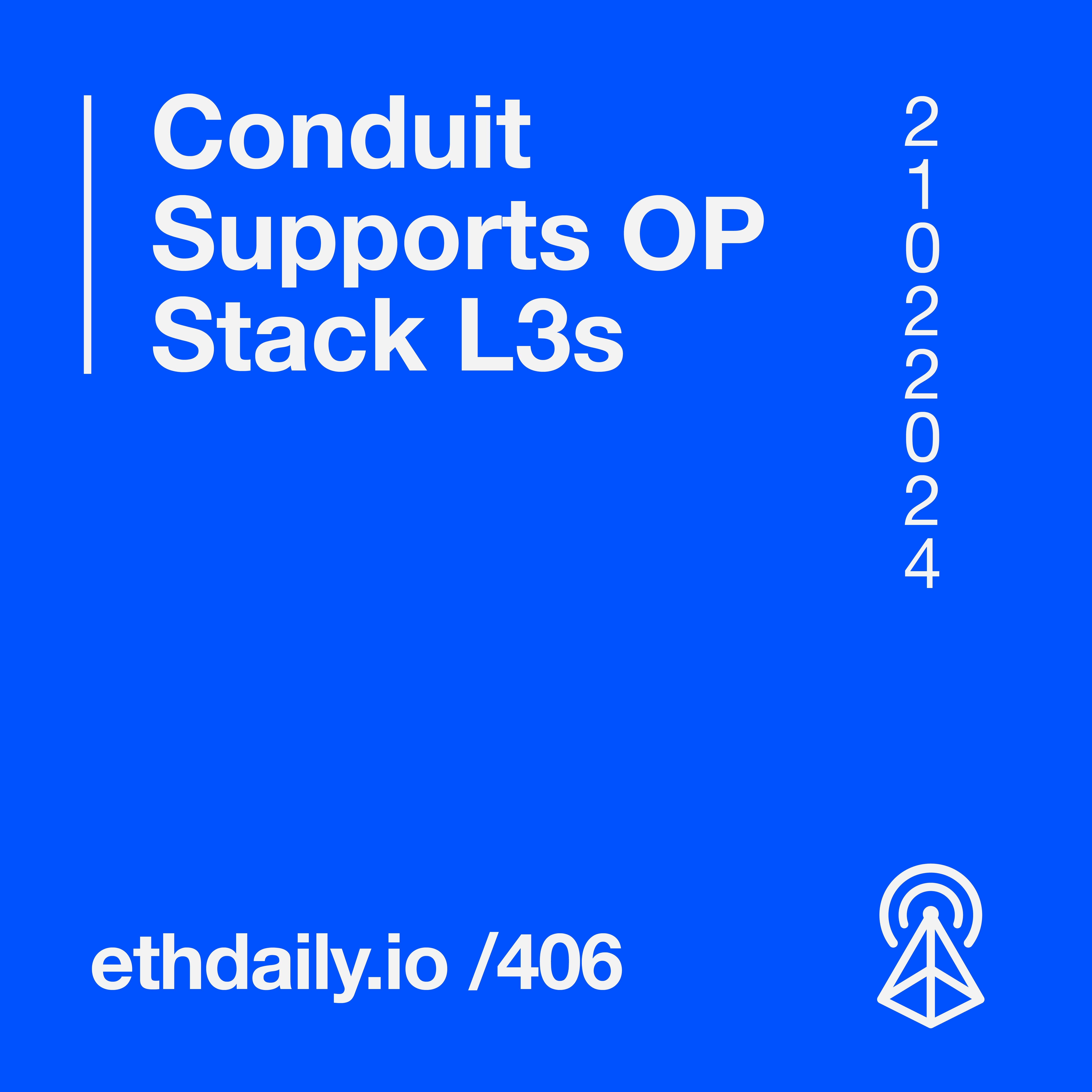 Conduit supports L3 deployments on OP Stack chains. Alchemy launches a contract account implementation. Fuel plans to launch to mainnet in Q3. And the EF opens applications for its first ZK grants round. Read more: https://ethdaily.io/406
