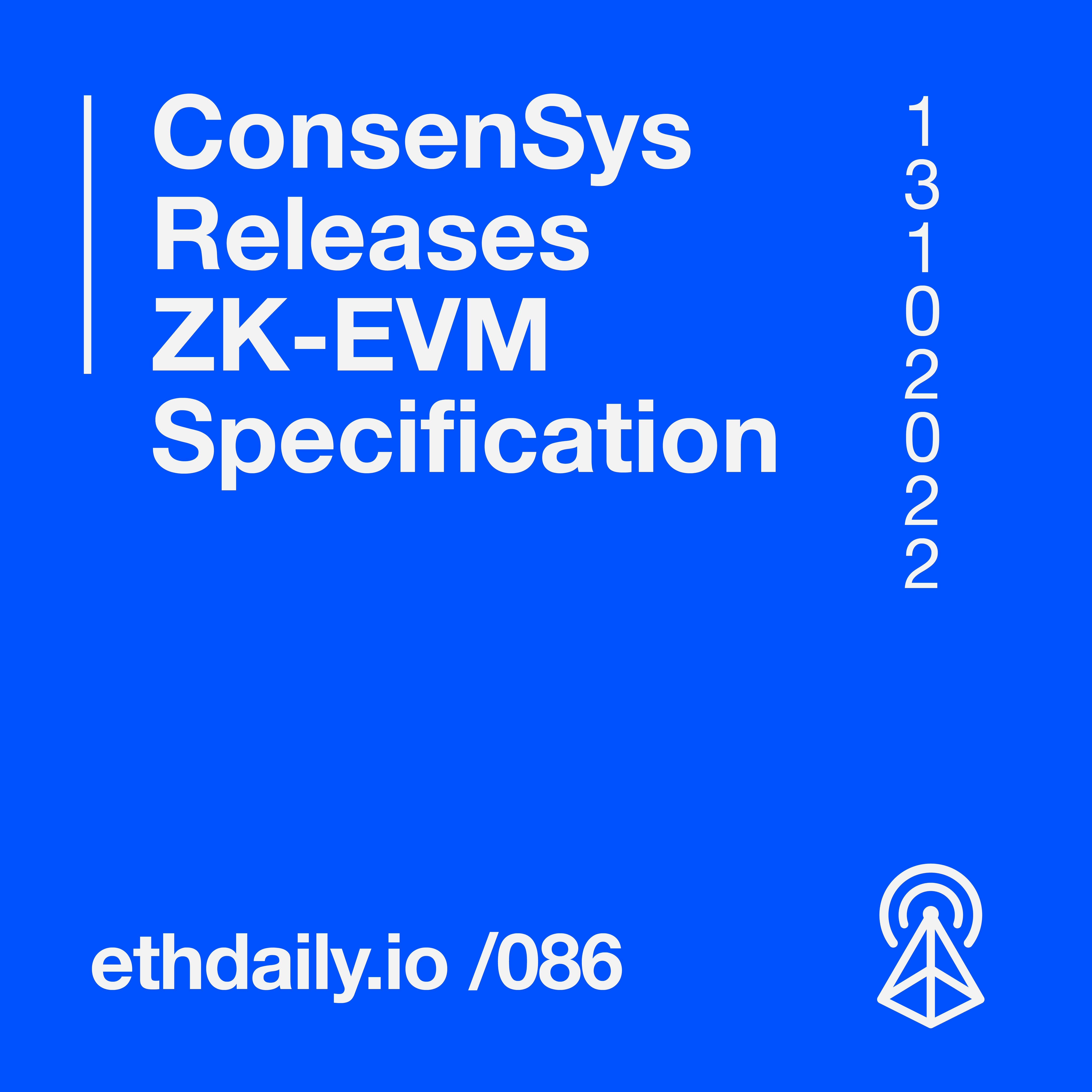 ConsenSys releases an updated ZK-EVM specification. Coin Center files a lawsuit against the U.S. Treasury. Uniswap raises a $165 million Series B. And Aave Governance votes in favor of a new V3 deployment. Read more: https://ethdaily.io/086