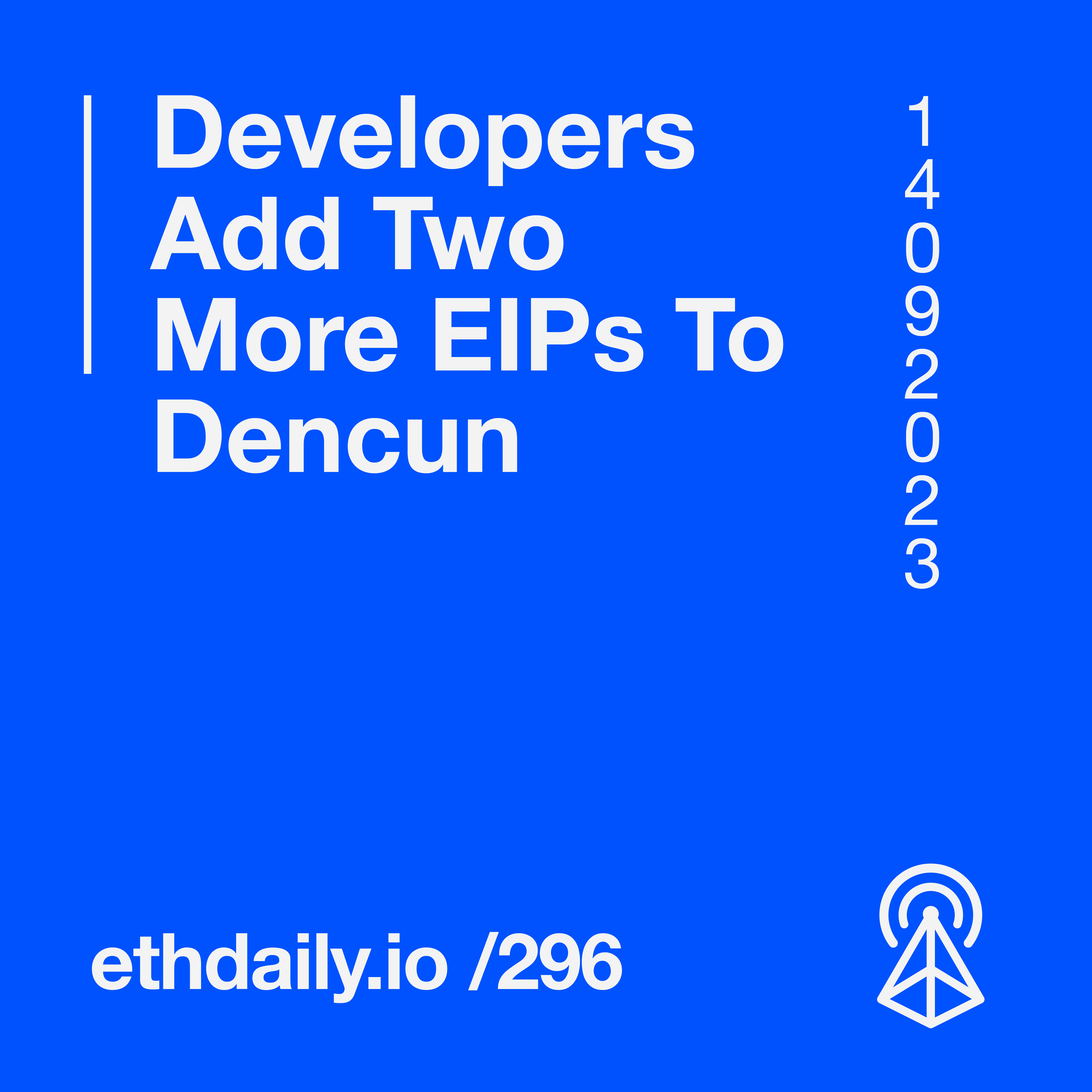 Developers add two last-minute EIPs to Dencun. Frame unveils its Ethereum rollup focused on NFTs. Aztec introduces a private smart contract framework. And Polygon announces a Phase 0 Frontier upgrade. Read more: https://ethdaily.io/296