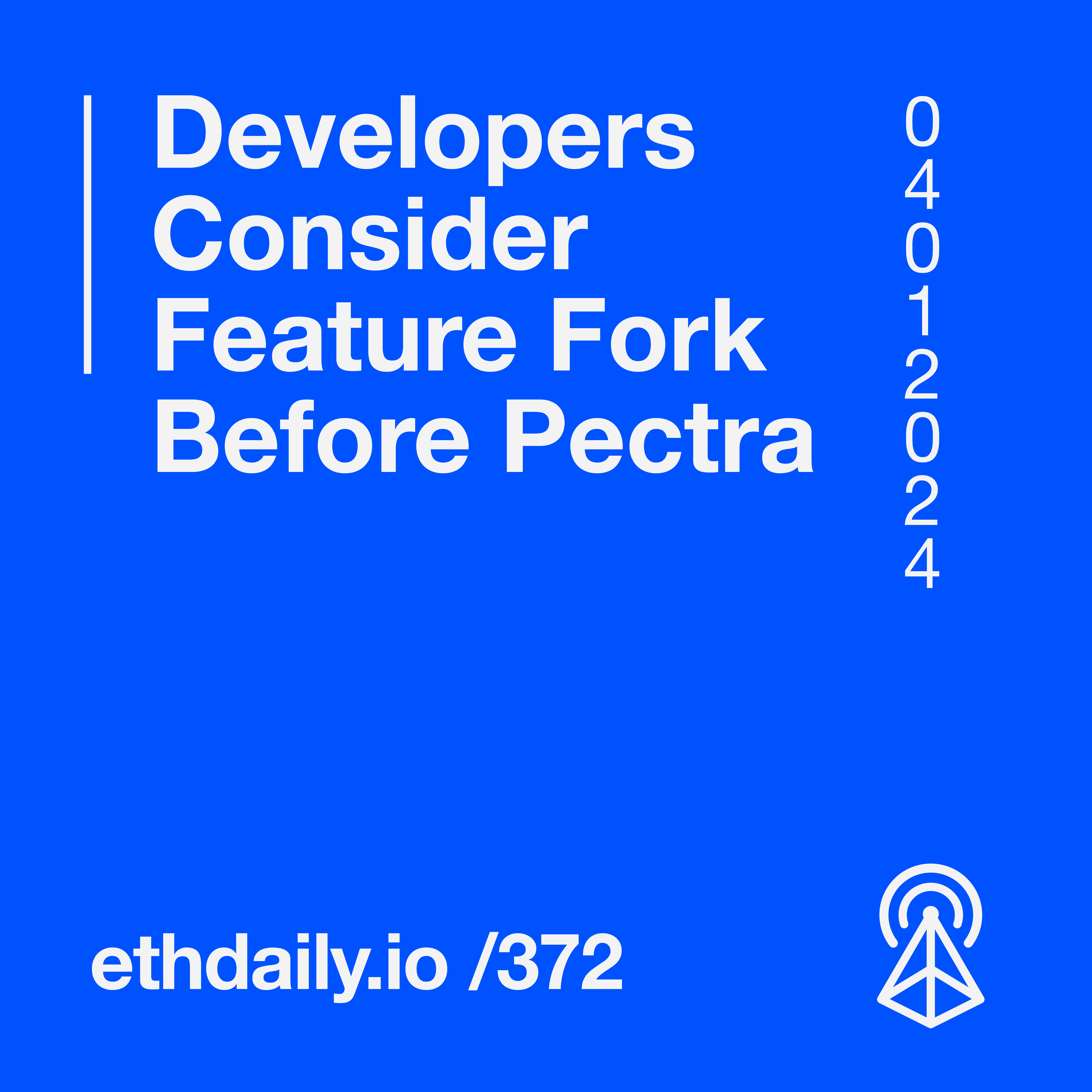 Core developers consider a feature fork before the Pectra upgrade. A vote goes live for Starknet v0.13.0 on mainnet. Arbitrum Orbit now supports custom gas tokens. And Gamma Strategies suffers an exploit. Read more: https://ethdaily.io/372
