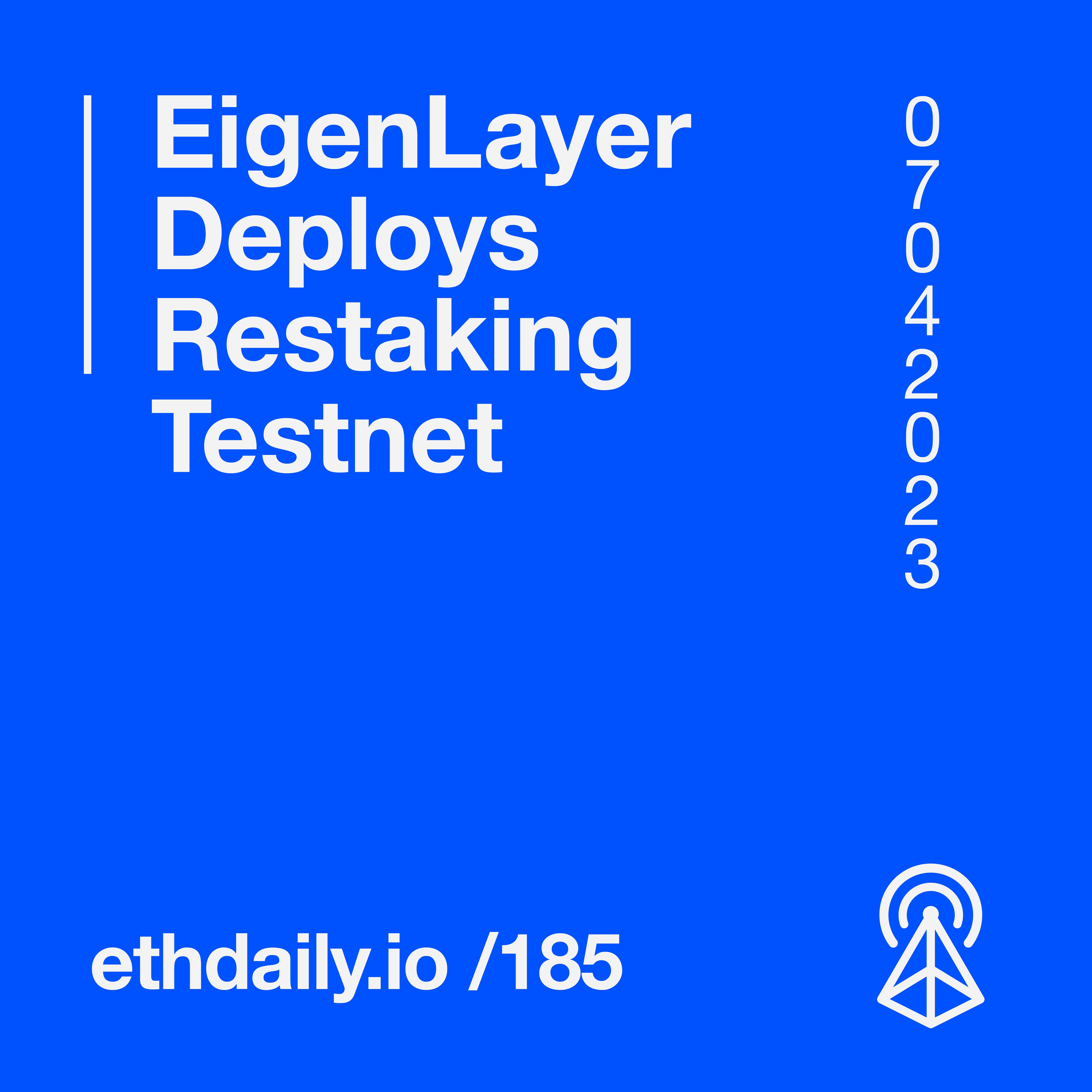 EigenLayer launches its initial restaking testnet. zkSync finds a solution to unfreeze 921 ether from a contract. ChainSafe launches a Goerli validator faucet. And the U.S. Treasury publishes a report on the illicit risk of DeFi. Read more: https://ethdaily.io/185