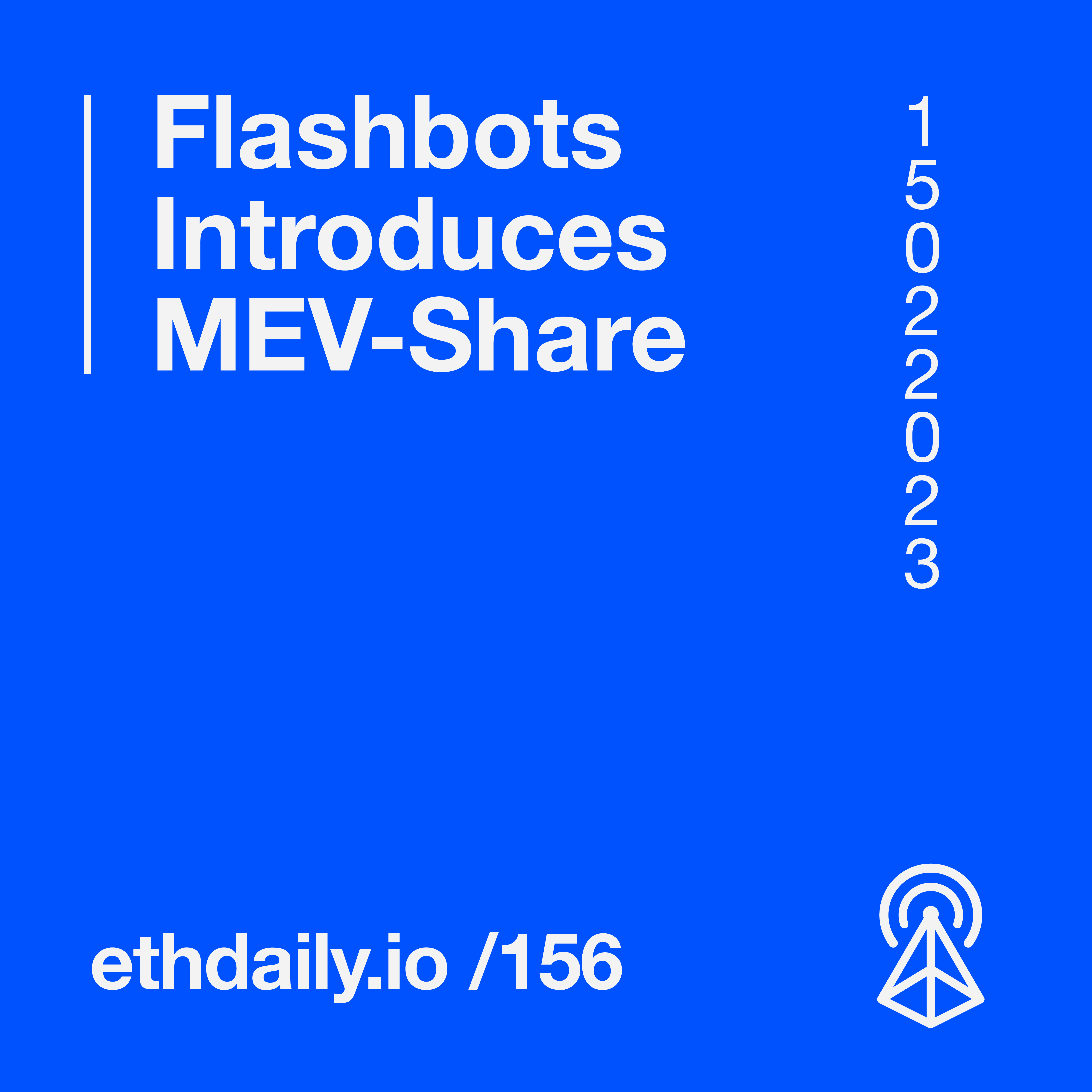 Flashbots introduces MEV-Share. KoruDAO launches a DAO-owned Lens Profile. Blur releases an OpenSea blocklist tool. And a proposal to make $SUDO transferable is now live. Read more: https://ethdaily.io/156