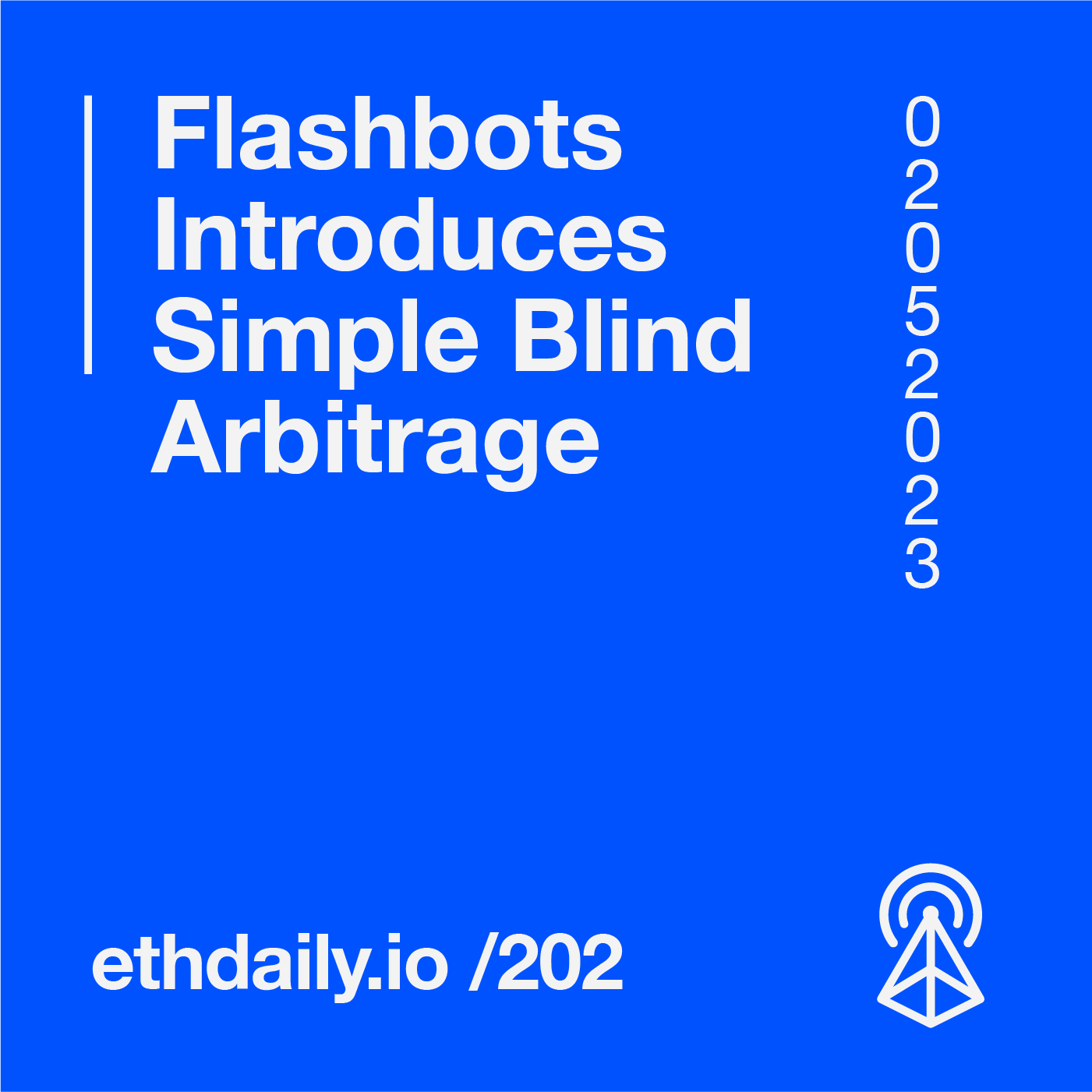 Flashbots introduces Simple-Blind-Arbitrage. The Uniswap Foundation launches a delegate race. Linea announces an Odyssey campaign. And Safe launches a non-technical account abstraction hackathon. Read more: https://ethdaily.io/202