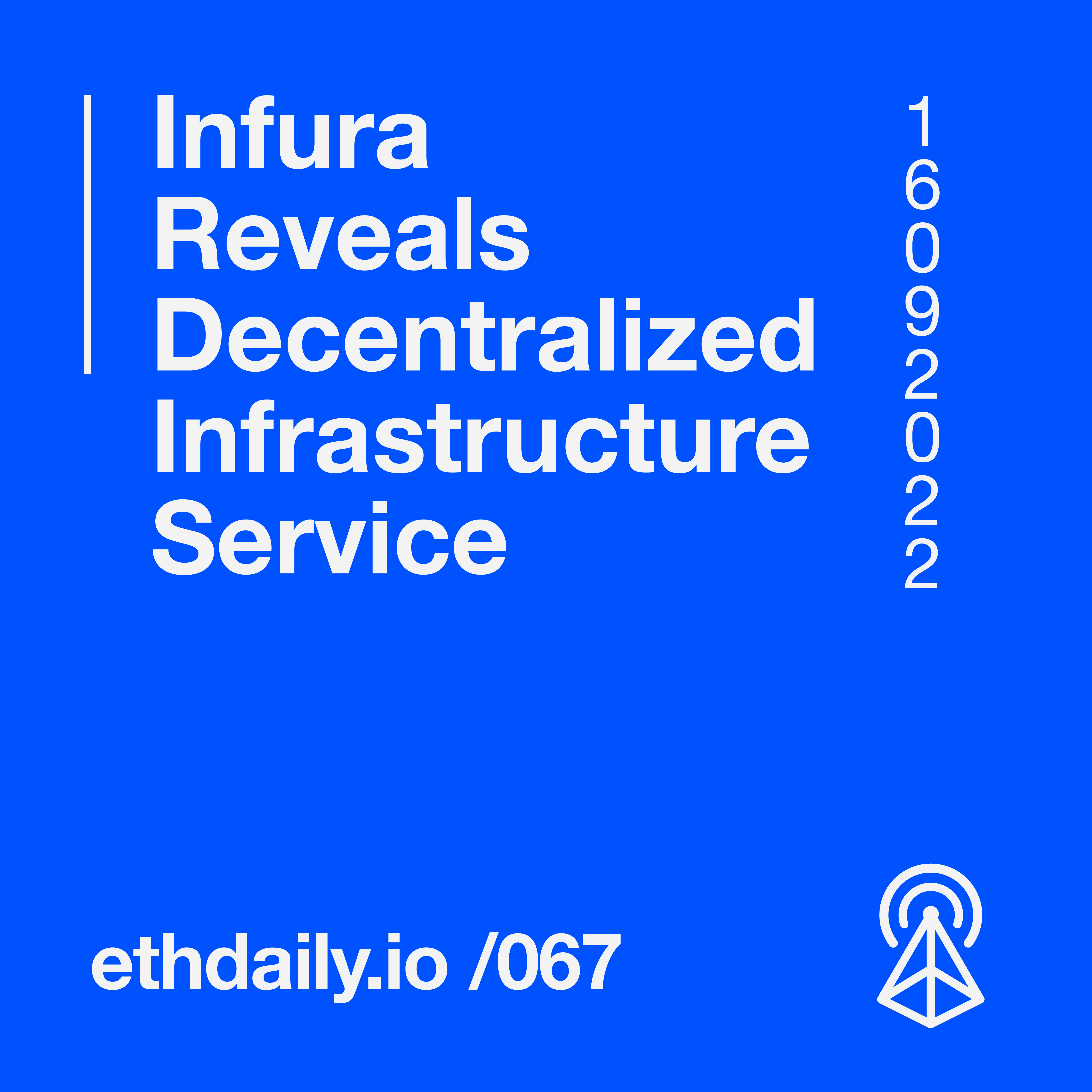 Infura reveals plans to launch decentralized infrastructure. Developers host the first post-merge All Core Devs Call. Arbitrum releases Nitro Node v2.0.5. And ENS plans to release a testnet for domain wrappers. Read more: https://ethdaily.io/067