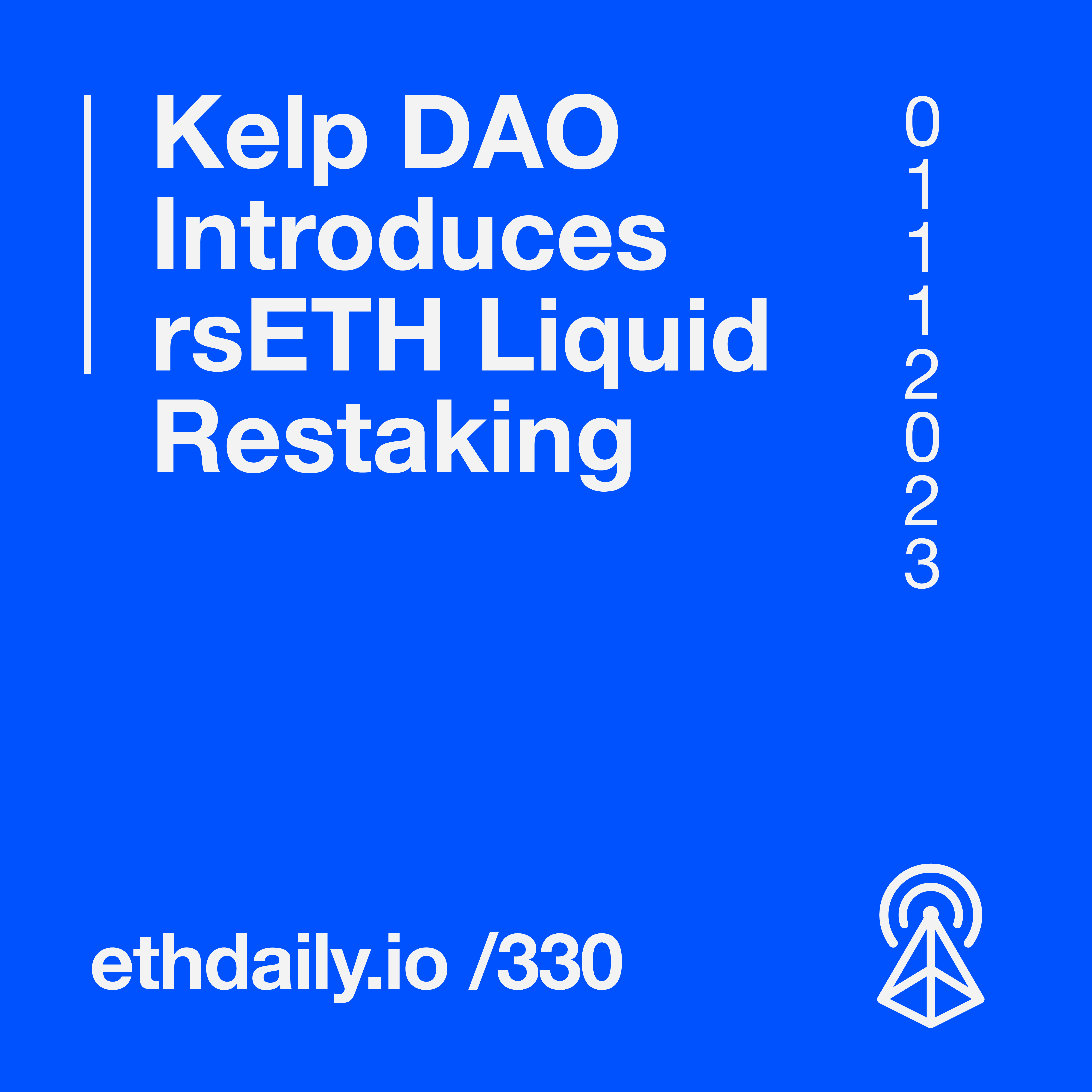 Kelp DAO introduces rsETH liquid restaking. Pyth Network announces its PYTH token airdrop. EigenLayer begins its LST race. And Rarible introduces marketplace-as-a-service. Read more: https://ethdaily.io/330