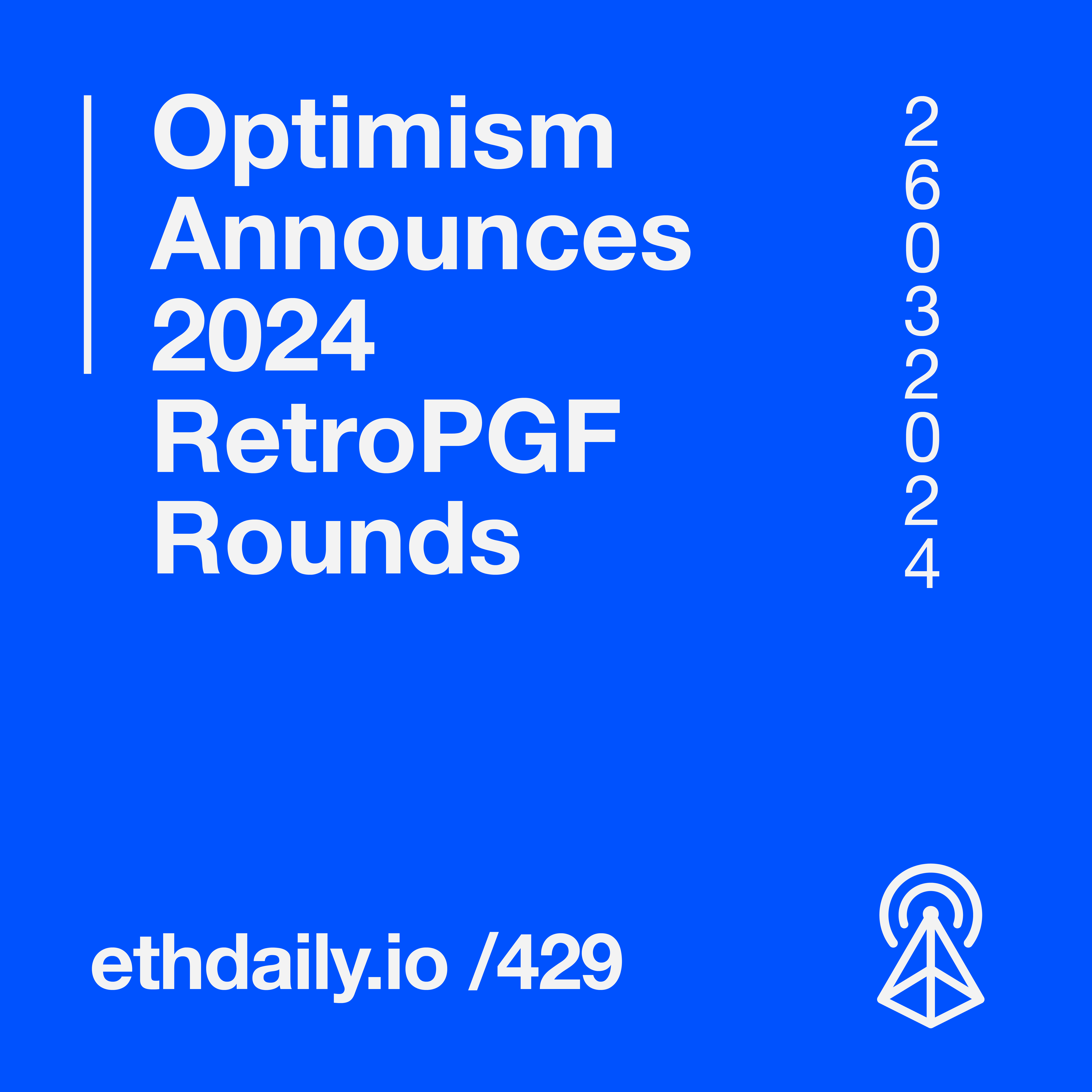 Optimism announces new RetroPGF rounds for 2024. A Tornado Cash trial begins in the Netherlands. Angle Protocol introduces USDA. And the CFTC classifies ETH as a commodity. Read more: https://ethdaily.io/429