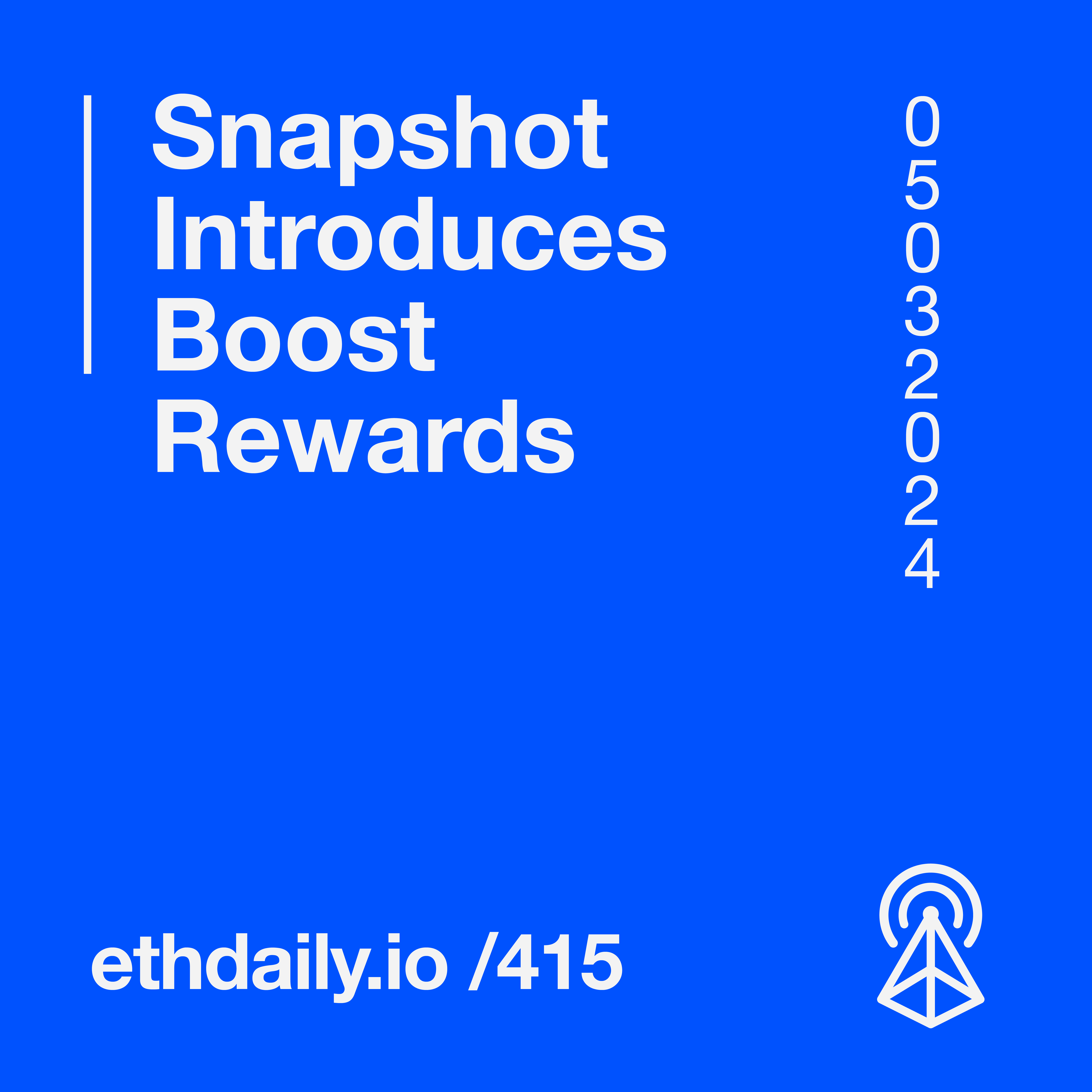 Snapshot introduces Boost rewards. Fraxtal's native bridge goes live on mainnet. Fluidkey introduces the Stealth Account Kit. And Astar Network launches the Astar zkEVM built on Polygon CDK. Read more: https://ethdaily.io/415