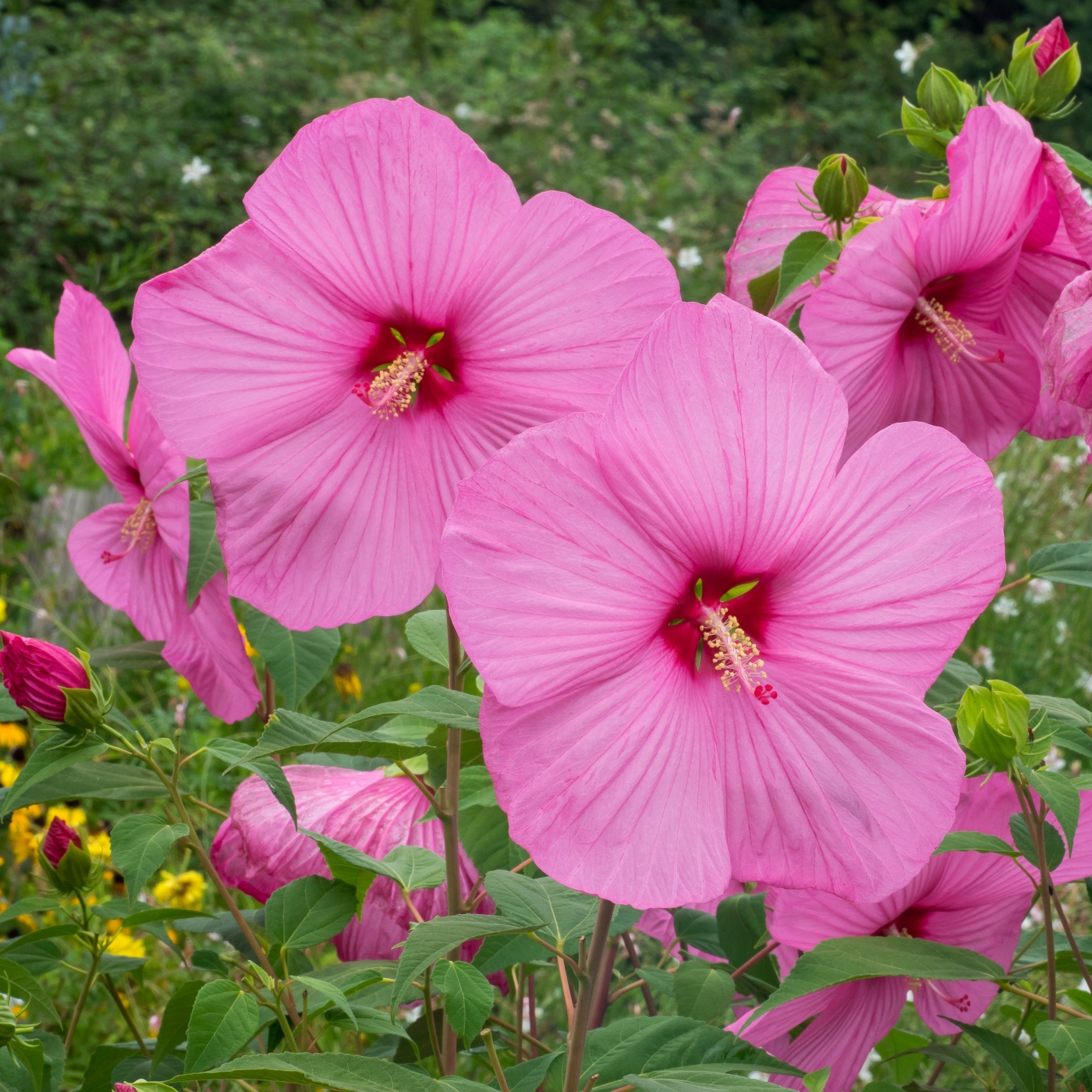Our Midwest Hibiscus moscheutos, (a.k.a. swamp mallow), is an herbaceous plant that has flowers that look so exotic that it seems tropical, but it is hardy zones 5-9.