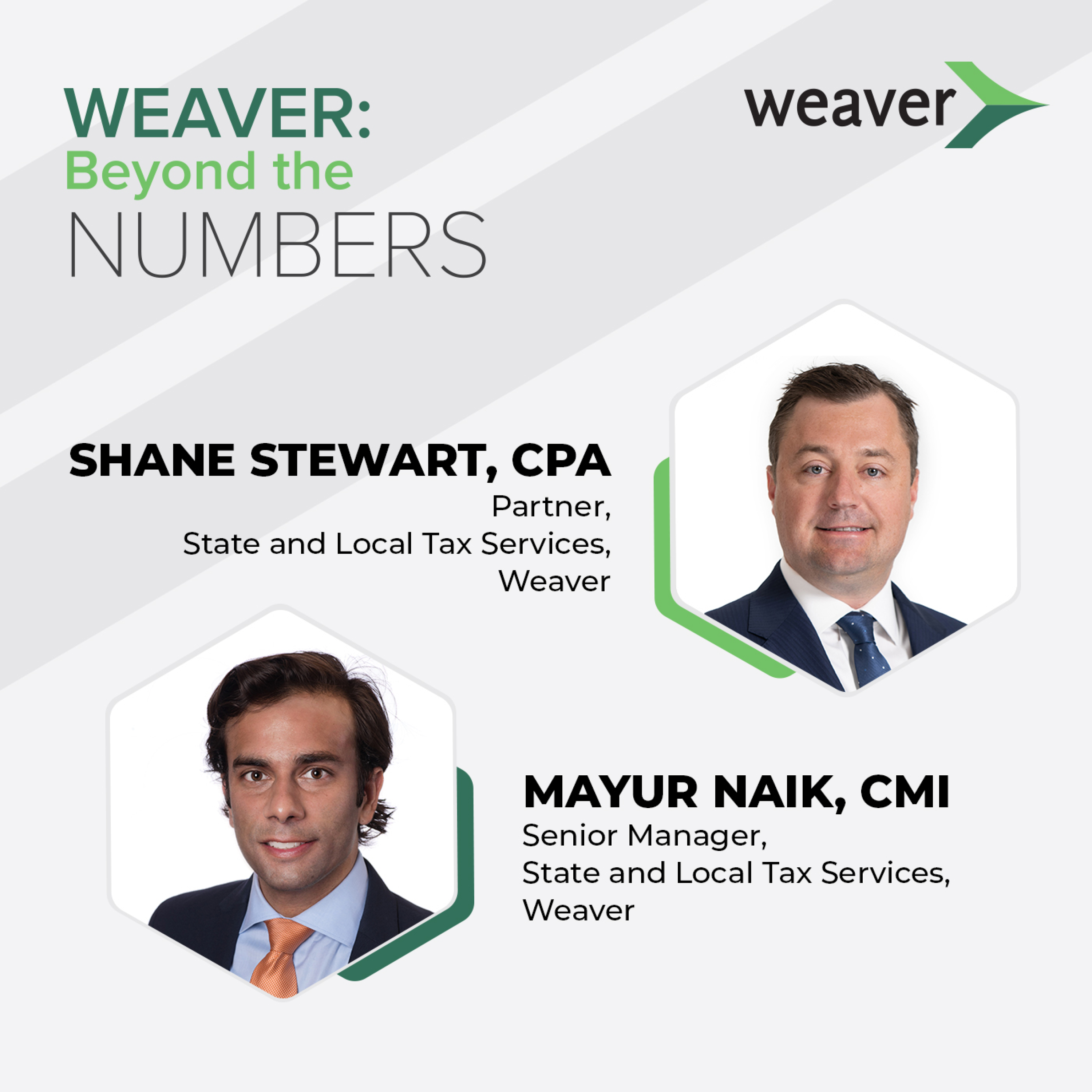 Weaver’s Mayur Naik, Senior Manager, State & Local Tax Services, and Shane Stewart, Partner-in-Charge, State and Local Tax Services, brought their wealth of knowledge and expertise to Beyond the Numbers.