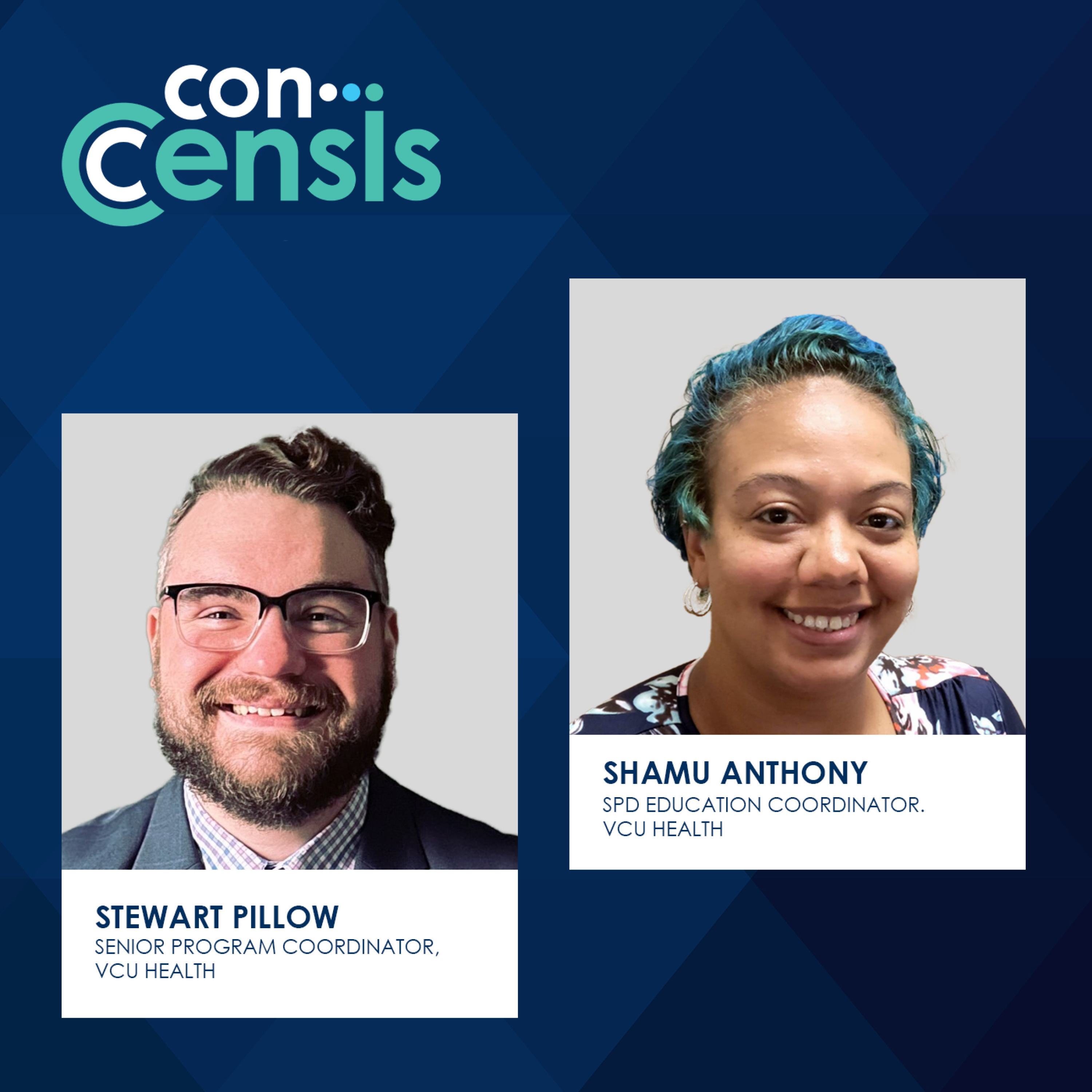 On today’s episode of the ConCensis Podcast, host Gabrielle Bejarano speaks with Stewart Pillow, Senior Program Coordinator at VCU Health, and Shamu Anthony, SPD Education Coordinator at VCU Health, about the significance of using quality data for education and training, and their experience using CensisAI², to gain insights to streamline operations and make better, data-driven decisions faster.