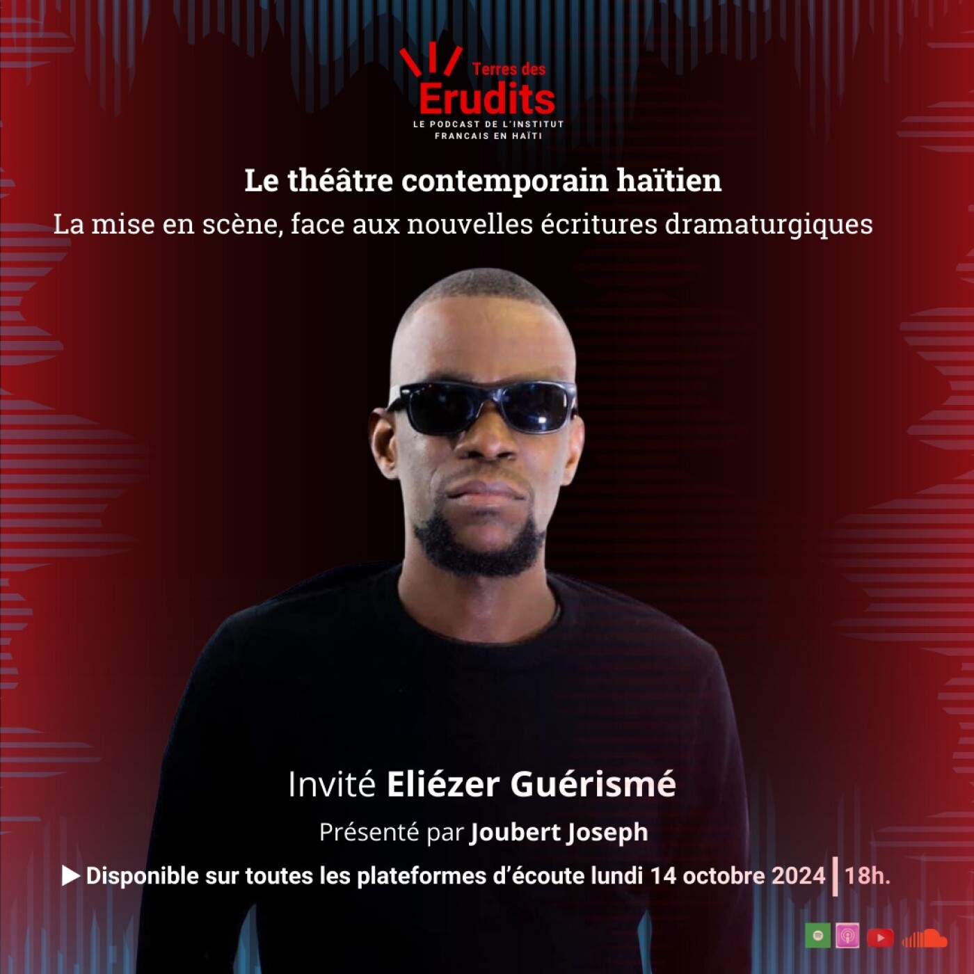 Pour le deuxième épisode de la 3ème saison du podcast Terre des Érudits de l'Institut Français en Haïti (IFH) sur le Théâtre contemporain haïtien, Joubert Joseph a rencontré Eliézer Guérismé. Au cours de cet entretien, le metteur en scène et co-fondateur de la Brigade d'Intervention Théâtrale (BIT Haïti) fait une introspection sur son parcours personnel et jette un regard sur les enjeux et les défis que pose la mise en scène dans le contexte des nouvelles écritures dramaturgiques.