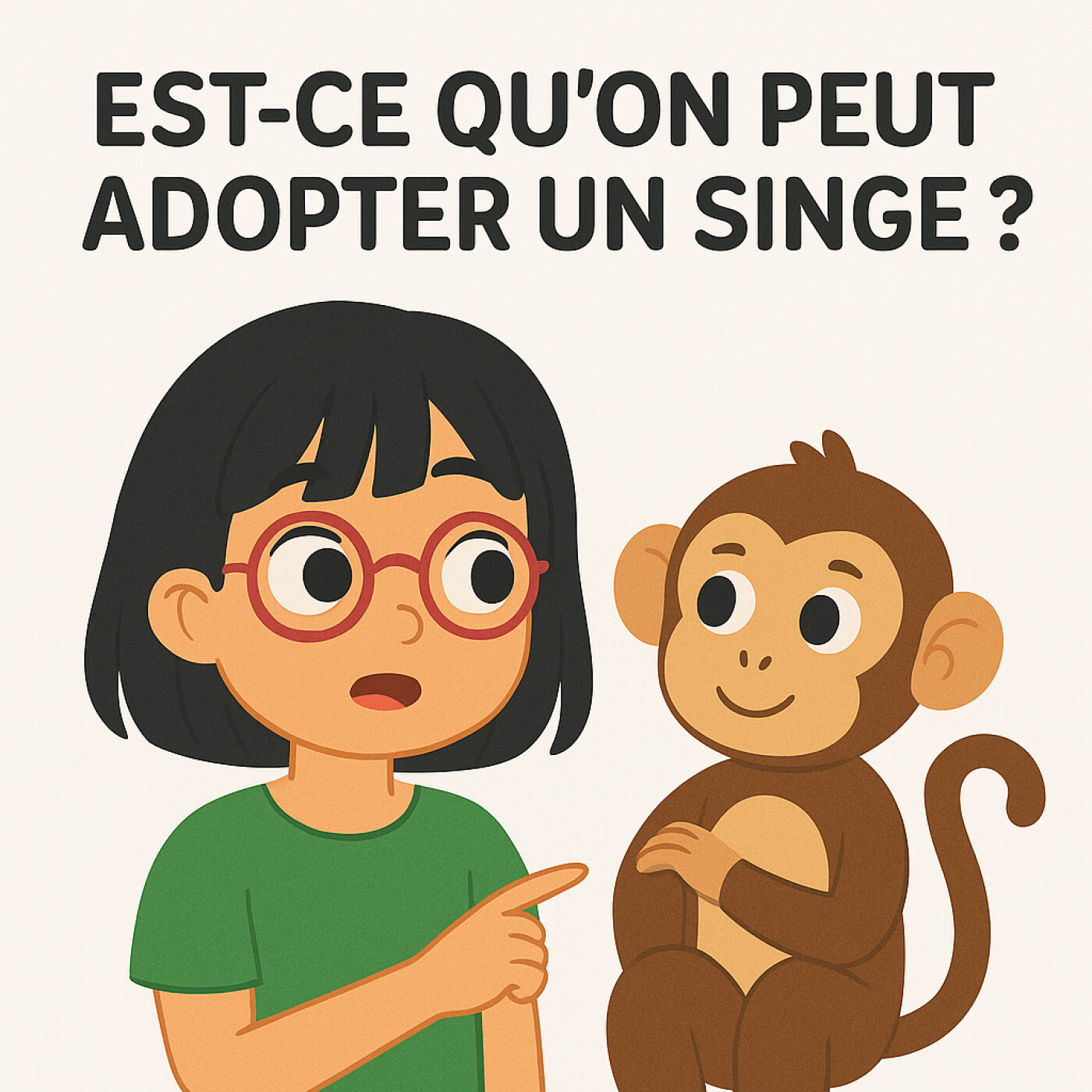 Peut-on vraiment adopter un singe comme animal de compagnie ? Dans cet épisode captivant d'Un jour, une question avec Mimi, nous plongeons dans le rêve d'enfance de Mimi, qui a toujours souhaité avoir un singe à ses côtés. Mais derrière cette envie se cache une réalité souvent méconnue : les singes, bien que fascinants et intelligents, sont des animaux sauvages qui nécessitent un environnement naturel pour s'épanouir. Mimi nous rappelle que, même si certains parviennent à cohabiter avec ces créatures, cela ne doit pas occulter leurs besoins fondamentaux et leur bien-être.