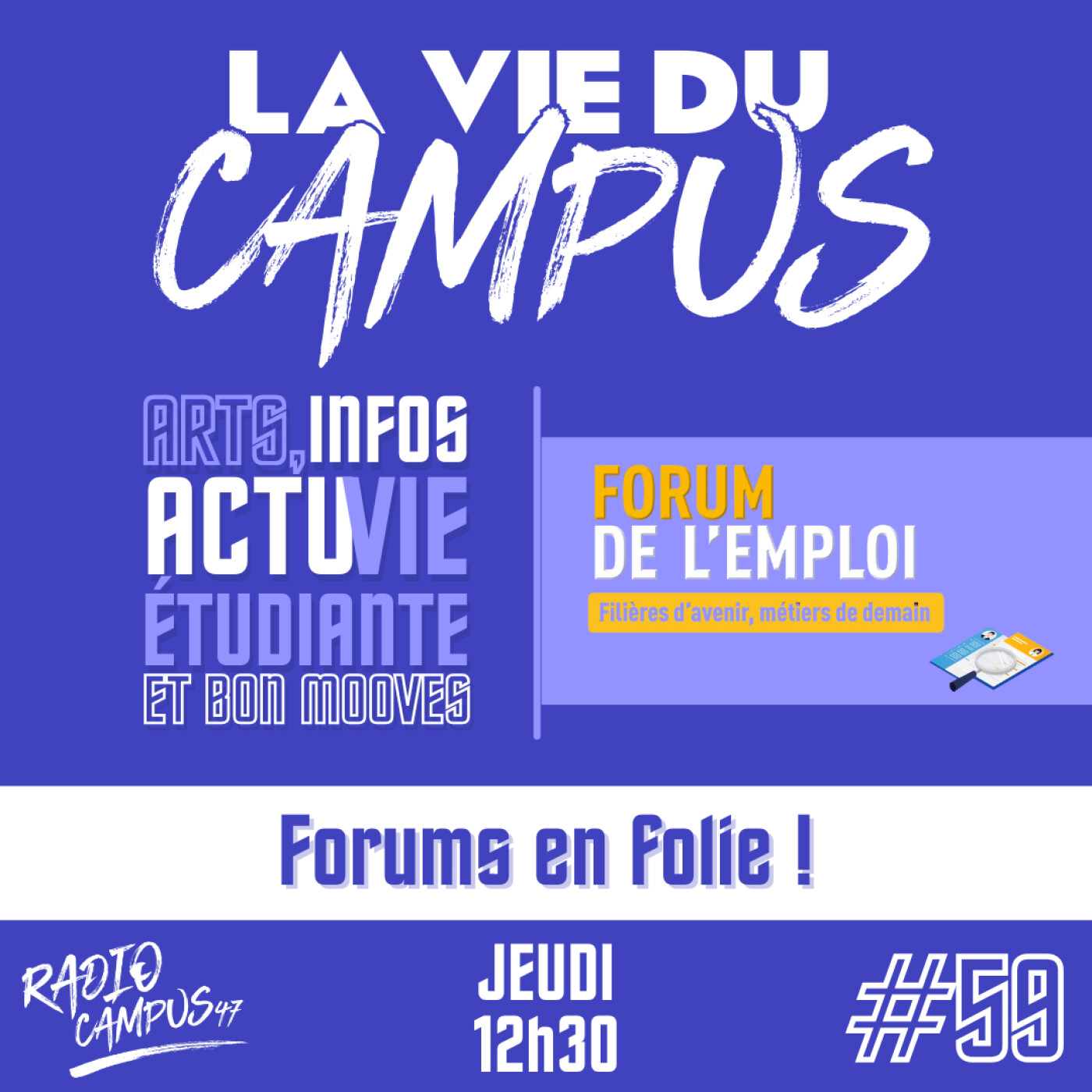 Aujourd’hui, c’est Elliot qui revient dans La Vie du Campus pour parler du forum Emploi et Mobilité de Lavardac et du forum Objectif Emploi de Villeneuve-sur-Lot. 📚