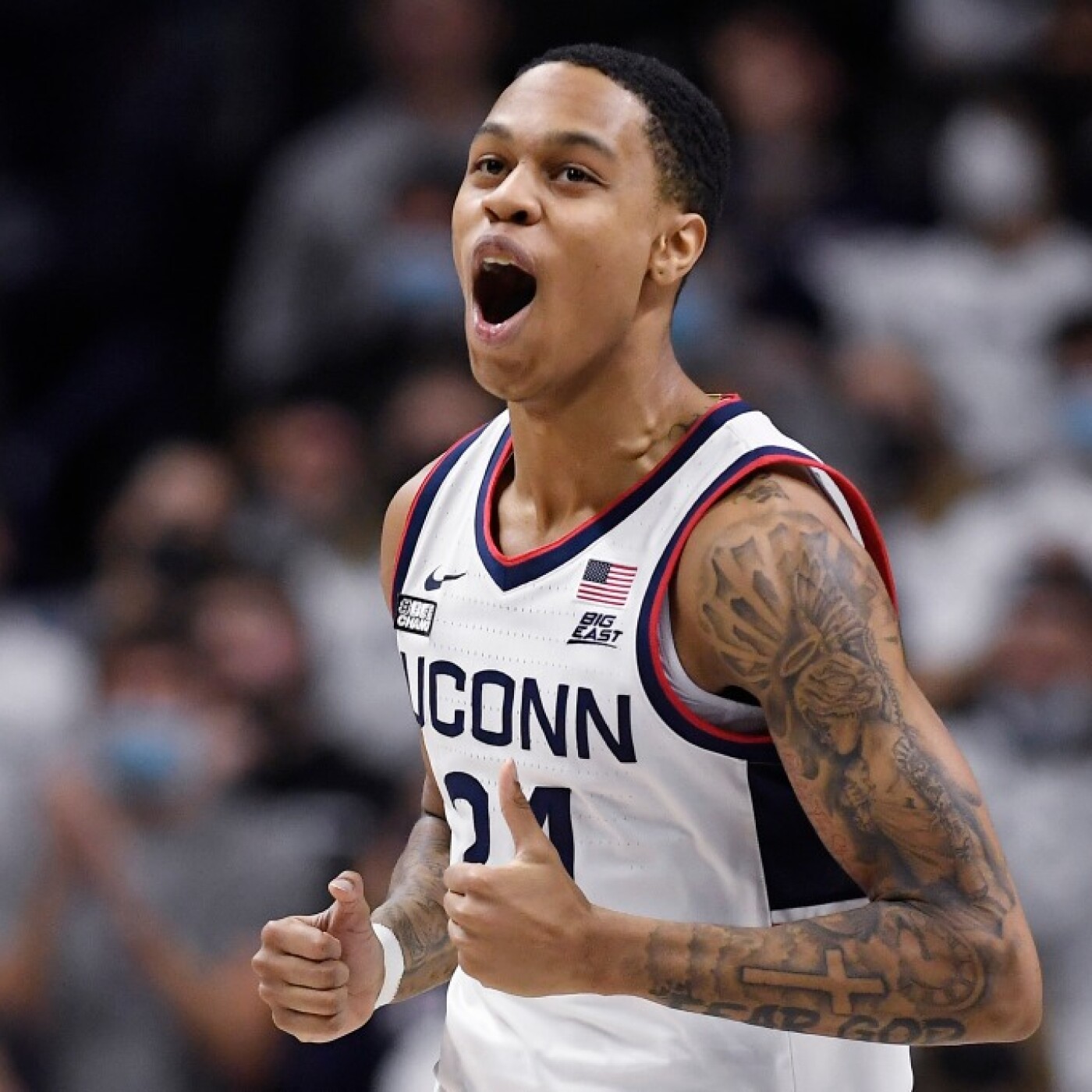 En 20 minutes, portrait de Jordan Hawkins, sniper qui évoluait aux Uconn Huskies, champion NCAA et candidat à la draft.