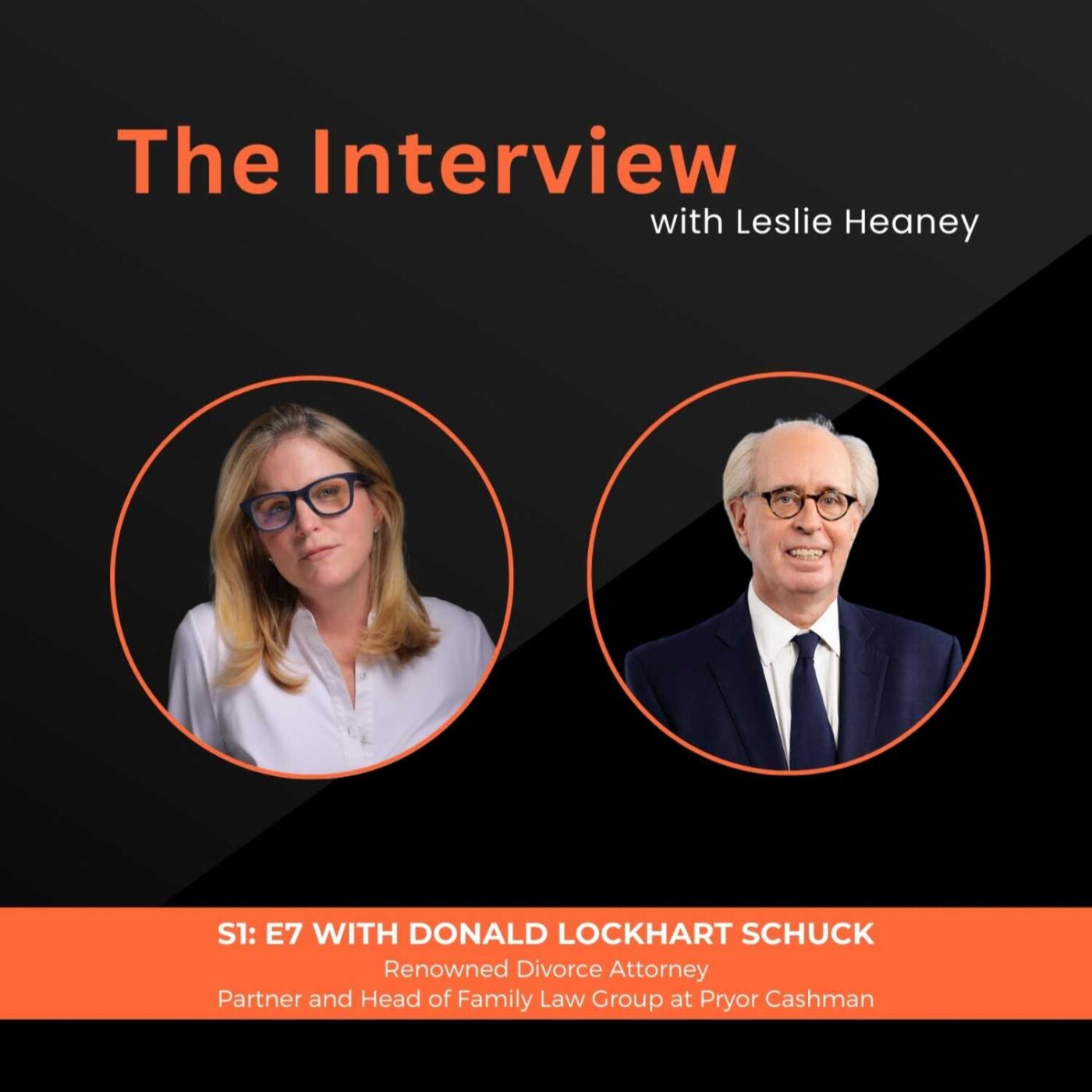 In Episode 7, Leslie talks with renowned divorce attorney Donald Lockhart Schuck. Don is a Partner and head of the Family Law Group at the firm Pryor Cashman in New York City. He has been hailed as a top family law attorney by Super Lawyers and Best Lawyers every year since 2007 and was recently named a Lawdragon 500 leading Family Lawyer for 2024.