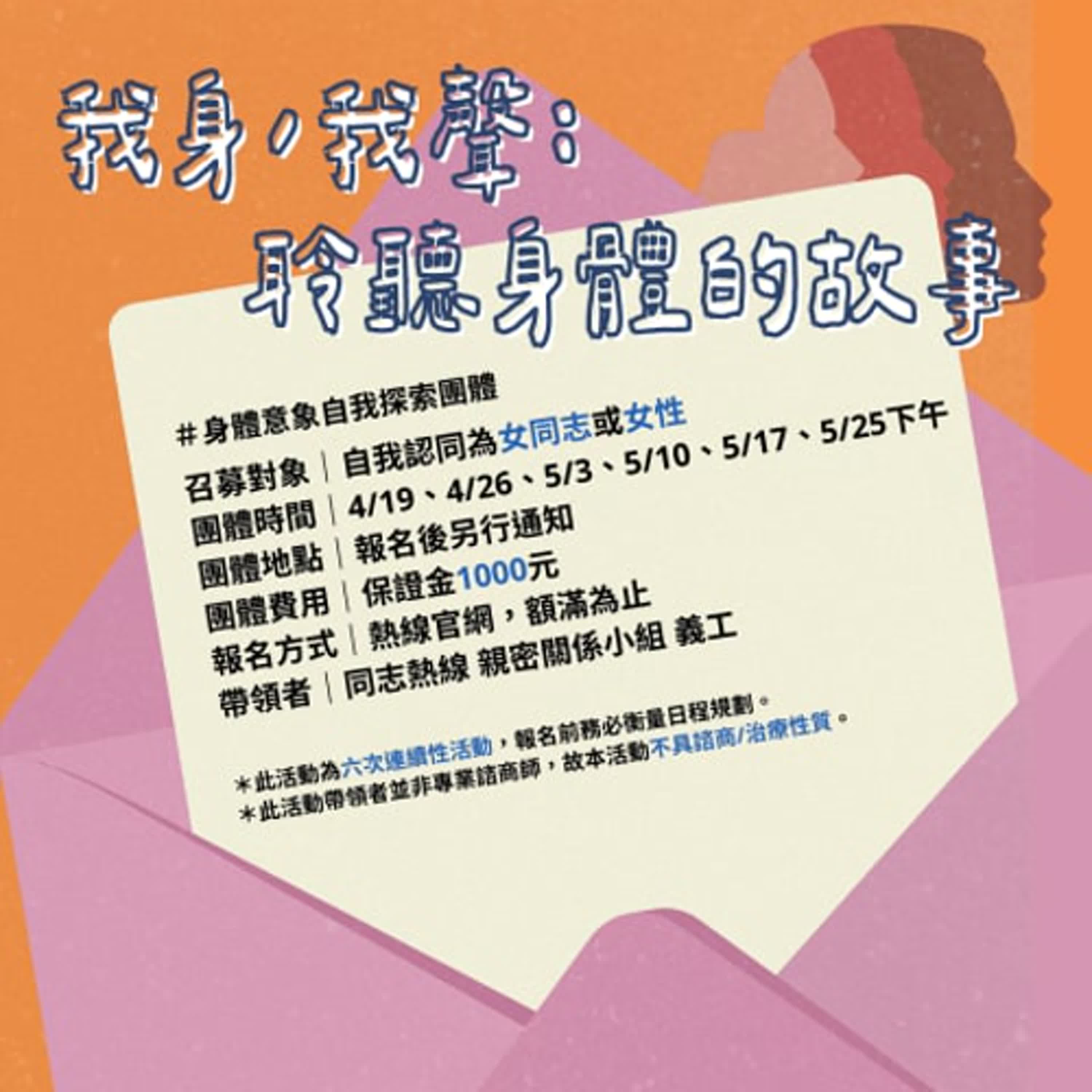 我身、我聲:聆聽身體的故事封閉式團體。往這裡報名