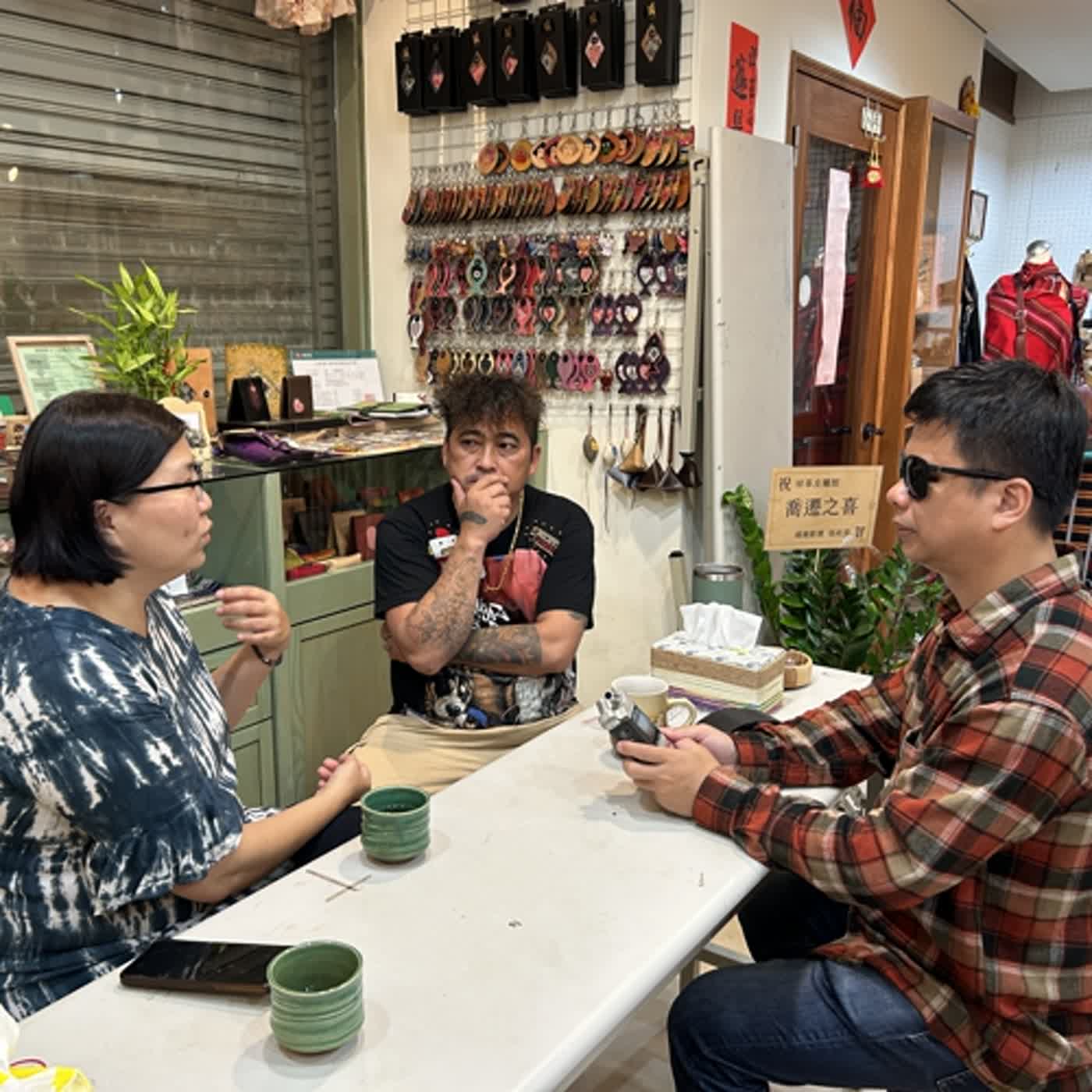 錄音當天外面下著一陣一陣的雨,在祥哥的工作室裡我們邊喝茶邊聊天,時不時祥哥就忍不住拿出他珍藏的作品跟我分享,那是一個很棒的午後。讓我來為你介紹這兩位很堅毅的故事人。