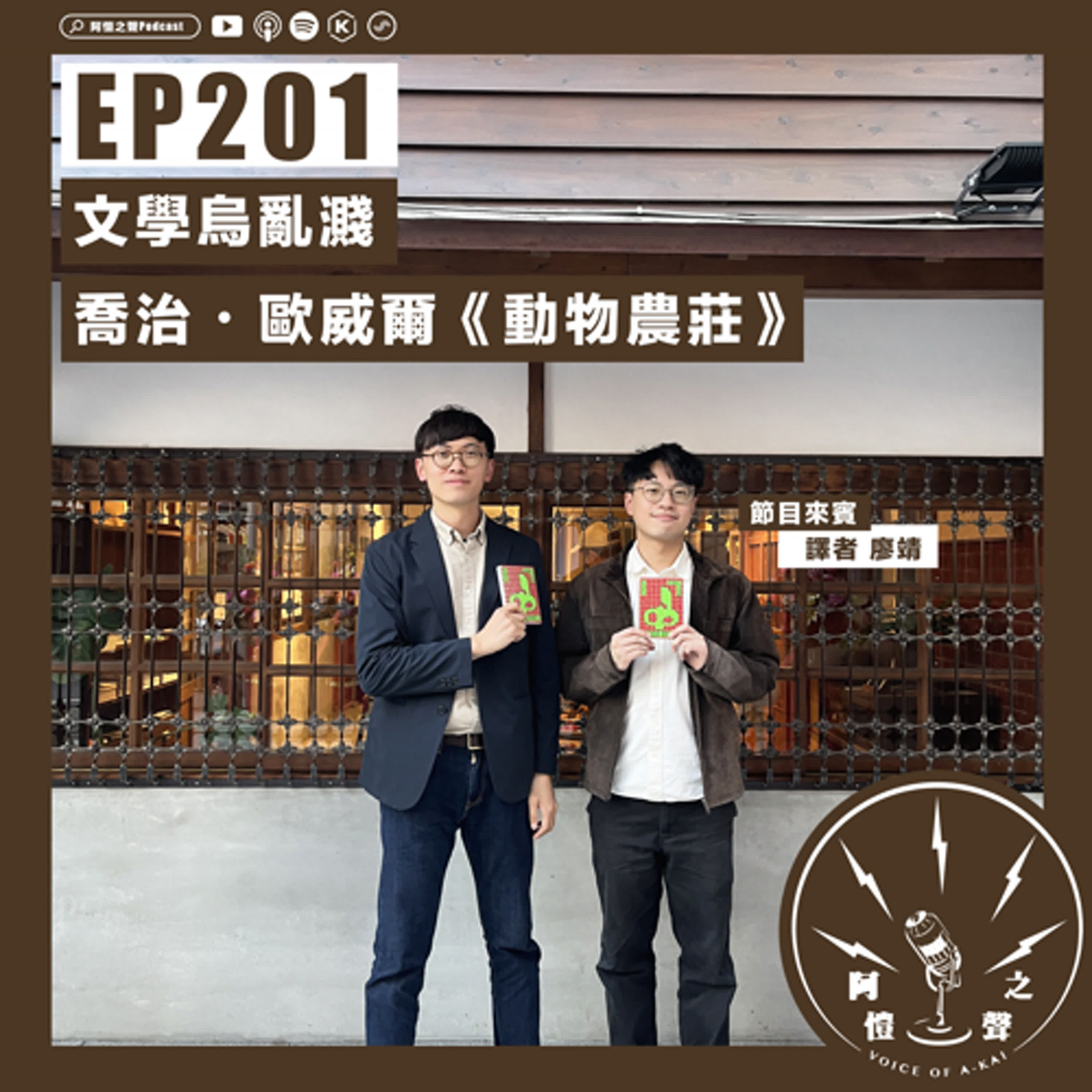歡迎收聽阿愷之聲Podcast「文學烏亂濺」單元,這集欲來討論一本八十年前的經典小說,英國作家喬治・歐威爾寫的《動物農莊》,但本節目無預算觀落陰作家,所以咱歡迎這本冊的華語翻譯aka來自嘉義的廖靖。