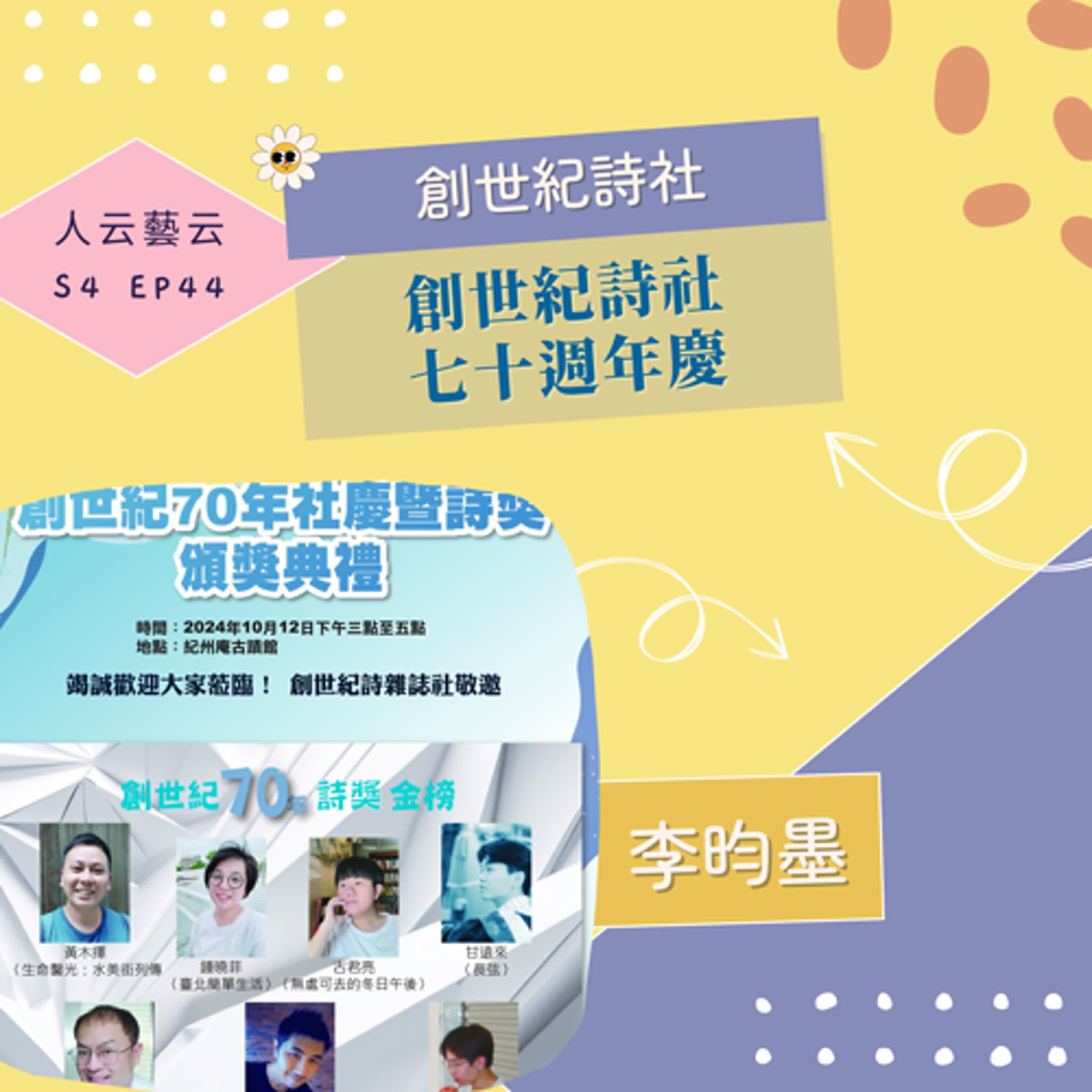 🌟「創世紀七十年詩獎」頒獎:2024年10月12日下午三點在紀州庵古蹟館隆重舉行