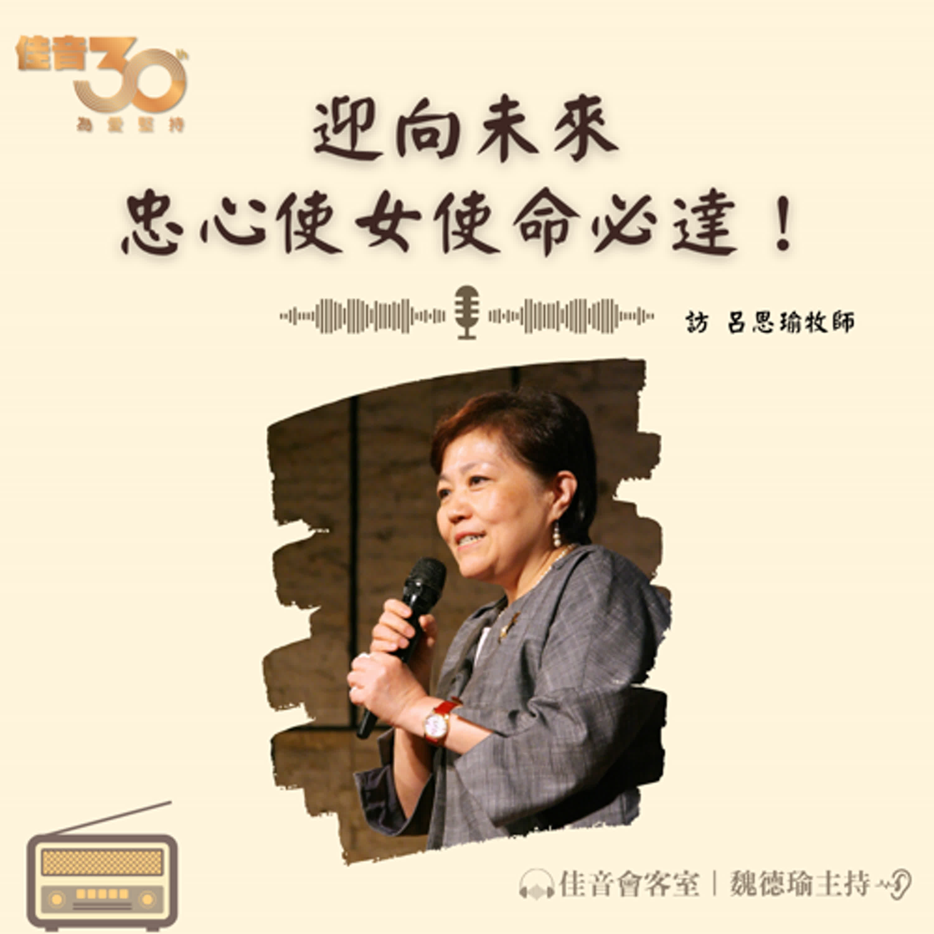 今天訪問佳音電台台長、佳音love聯播網執行長呂思瑜牧師。呂思瑜台長在佳音電台還在申請設立的階段就已經加入企畫團隊。佳音電台成立迄今屆滿30年,發展成為佳音love聯播網、有台北佳音電台,羅東電台、桃園GoGo radio、佳音音樂網、佳音詩歌網。佳音網站、月刊、youtube、佳音APP、podcast…呂思瑜台長與同工團隊盡心竭力擴張福音廣播境界,傳揚佳音好信息,分秒守護城市心靈。今天的專訪一起來聽呂思瑜台長的生命故事、信仰見證、佳音媒體中心新址的建成進度,與她日新又新,不斷精進的精彩人生。佳音30,展望未來的新願景。