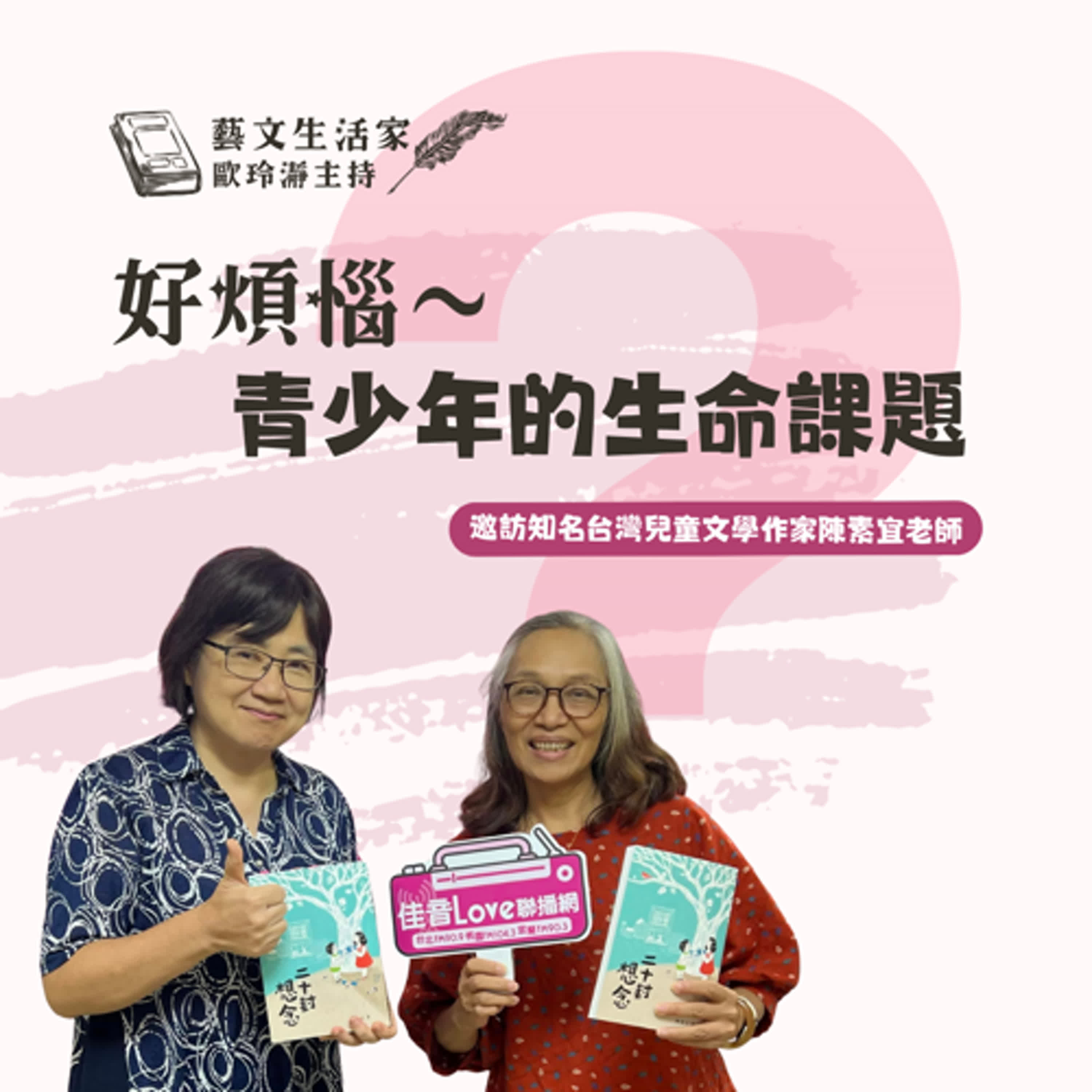 本集藝文生活家節目中, 知名台灣兒童文學作家陳素宜老師除了以自己資深的寫作經驗,分享一本優質的青少年讀物需要具備的哪些特性?也以作品《二十封想念》為例,從青少年的角度出發,深入探索愛與成長的生命教育課題,歡迎收聽!