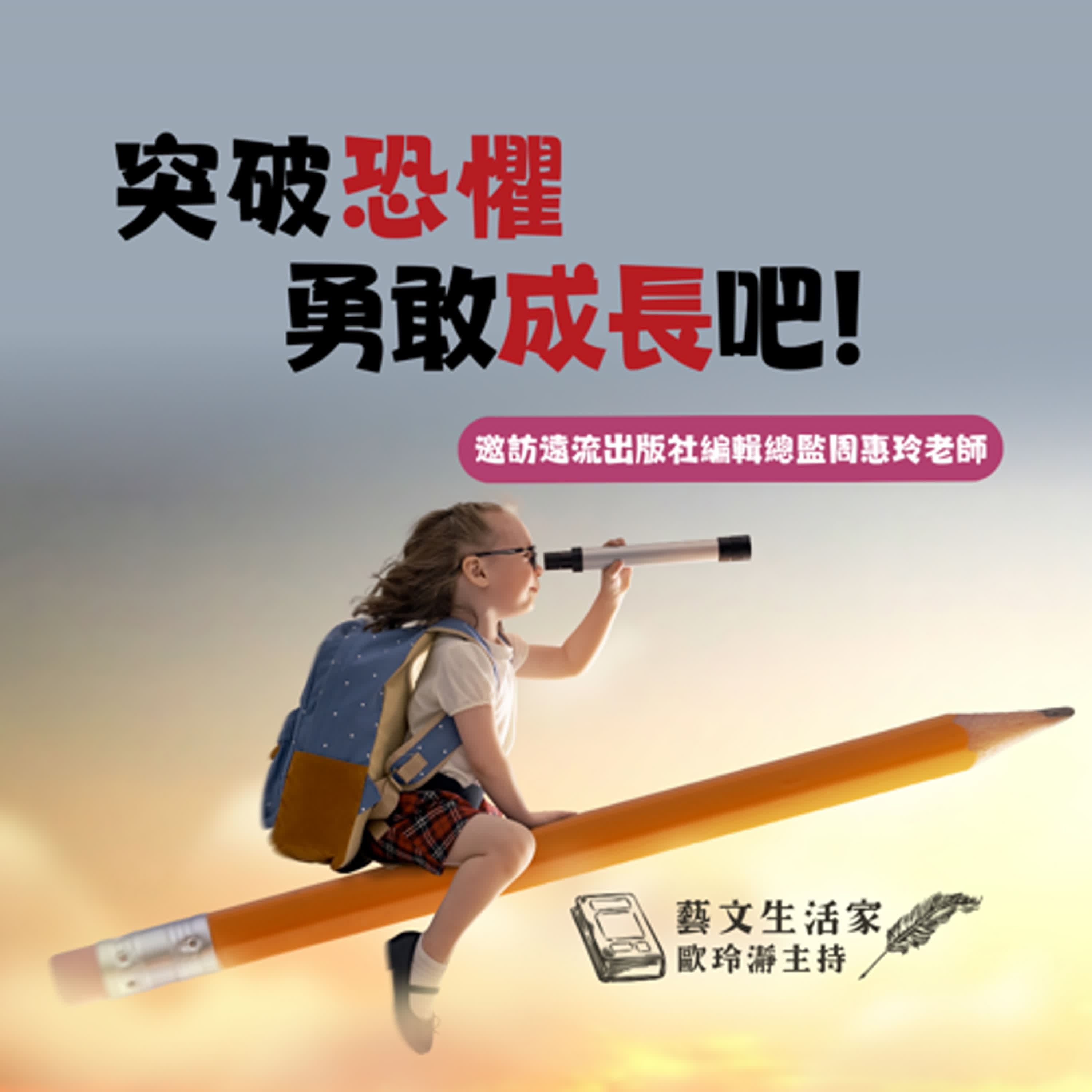 在本集藝文生活家節目中,我們邀請了遠流出版社編輯總監 周惠玲老師深入對談,歡迎與我們一起在故事中迎向恐懼,在空中擁抱勇氣!