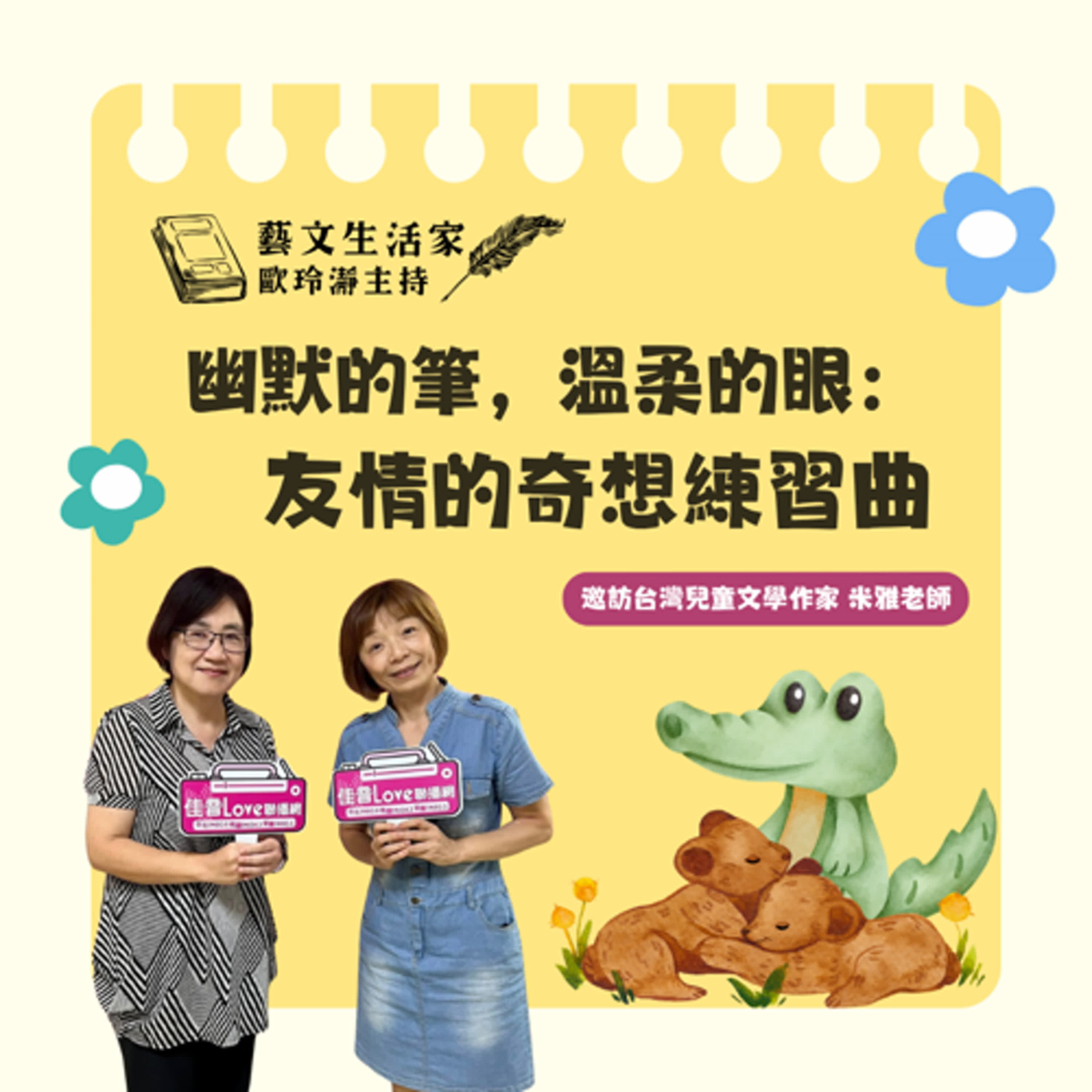 從果醬的甜味,到夢裡飛出的魚群,一隻獅子和一條鱷魚,用幽默與陪伴,寫下日常裡最溫柔的奇想。本集「藝文生活家」邀請作者米雅老師,分享《帕歐帕歐和阿里》的創作想法與過程,以及與插畫家培根君合作所激發的幽默驚喜。
