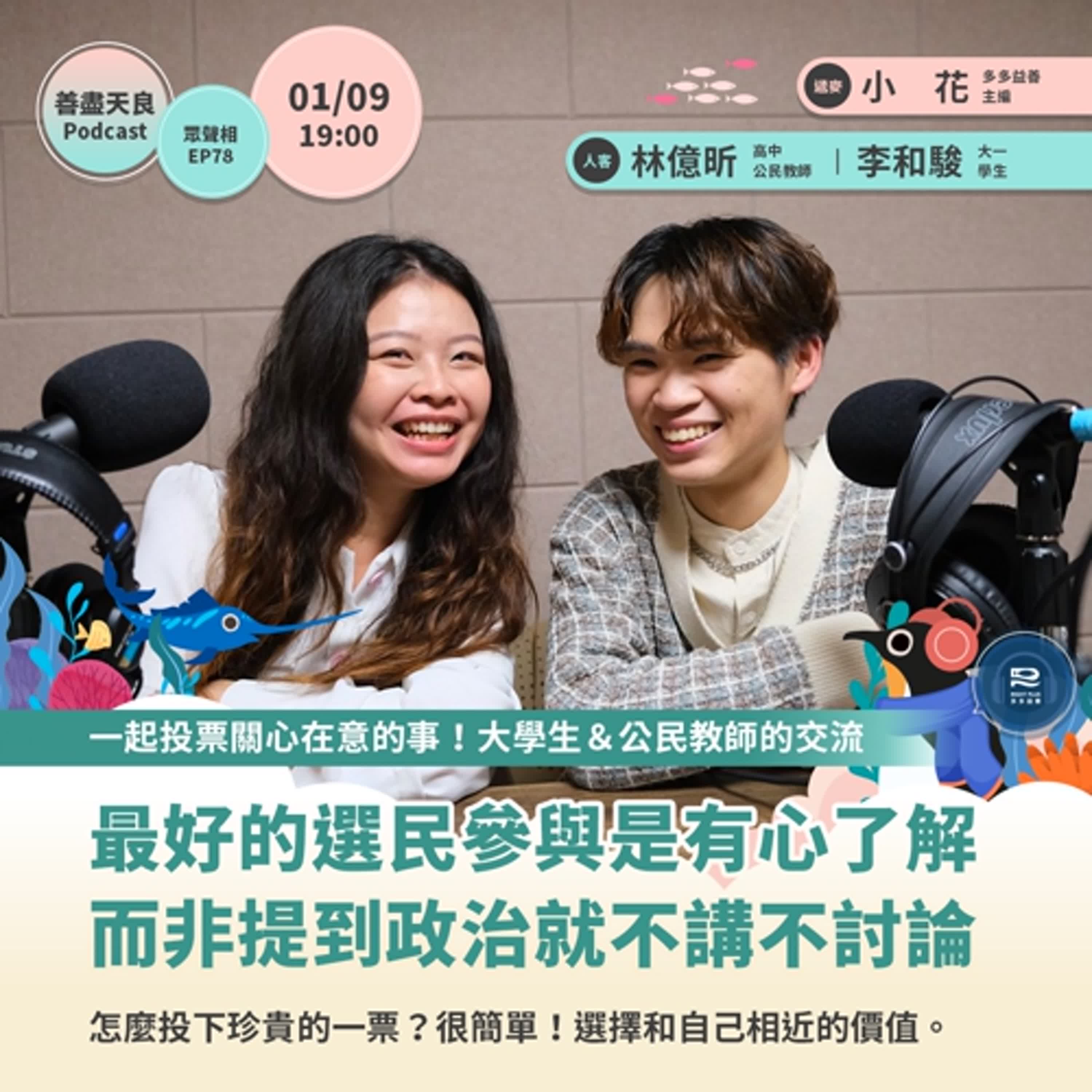 作為「前任」師生、現任好朋友,30 歲 up 的公民老師億昕、19 歲的大一學生和駿,要和你一起聊聊他們的政治參與經驗,並邀請你 1/13 一起出門投票,透過選票表達自己的想法!