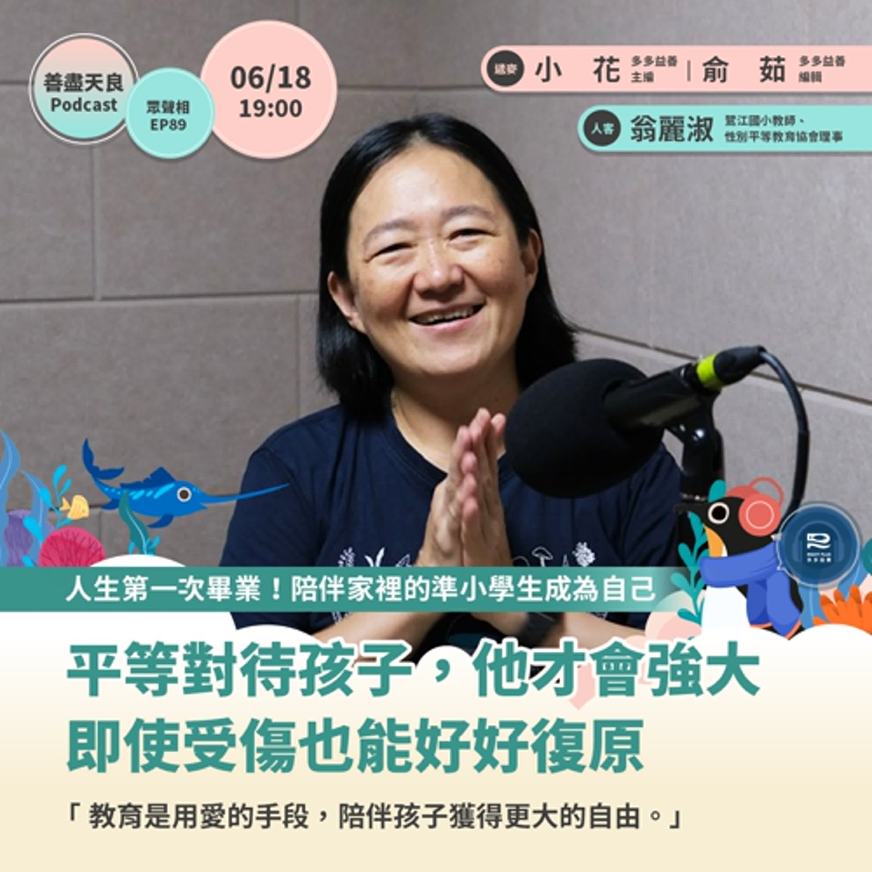 在國小教書 20 多年、當媽媽資歷也將近 20 年的麗淑,同時也是性別平等教育協會理事,她以豐厚的教育理念和經驗出發,溫柔又堅定的告訴我們:焦慮孩子的教養之前,也許可以先想想:自己想成為什麼樣的大人?