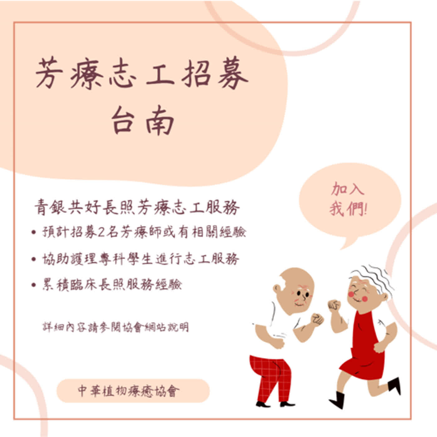 詳細資訊 | https://botanictherapyassociation.com/2023/02/volunteer_202302_tainan/