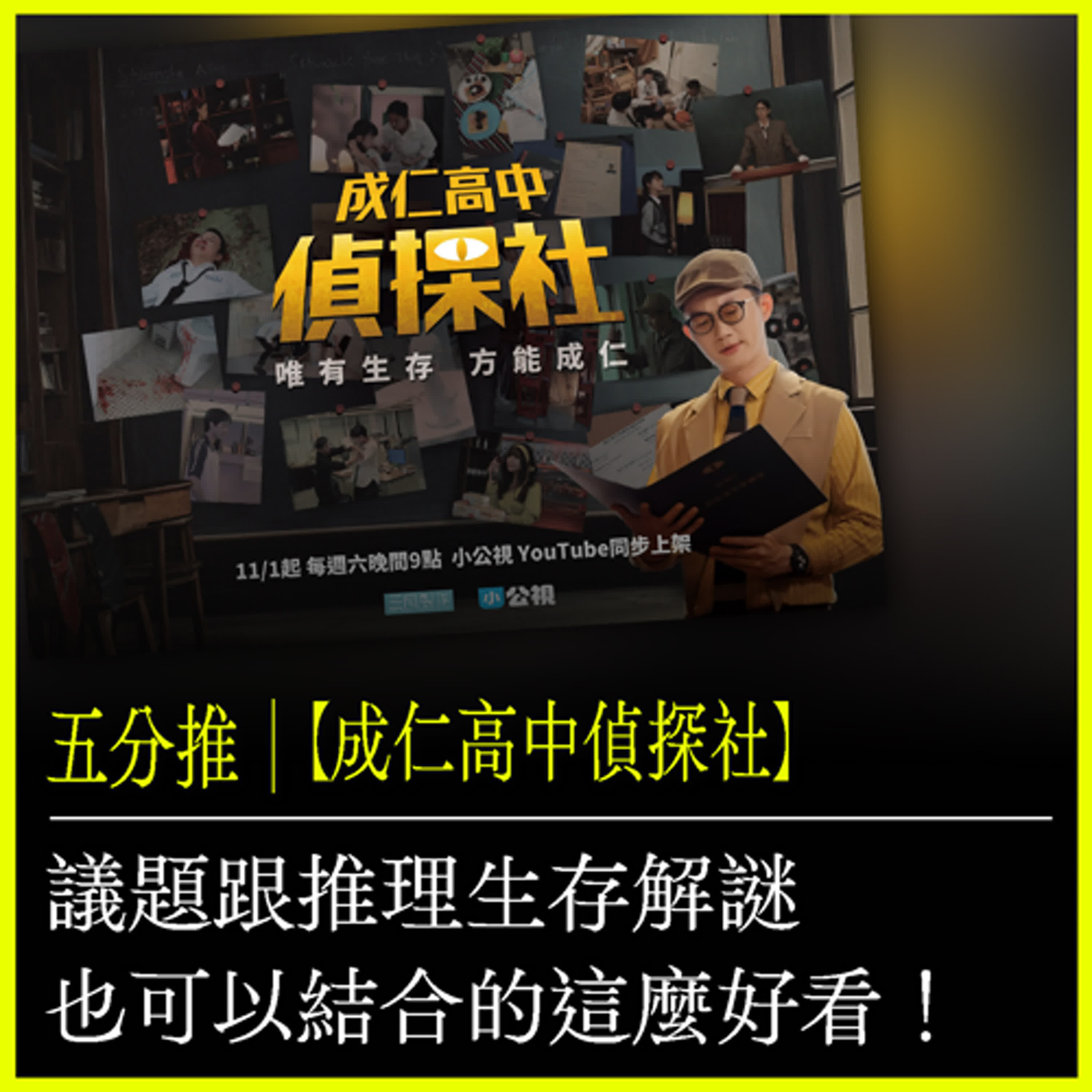 本集五分推力瑋要來推薦小公視的實境節目《成仁高中偵探社》