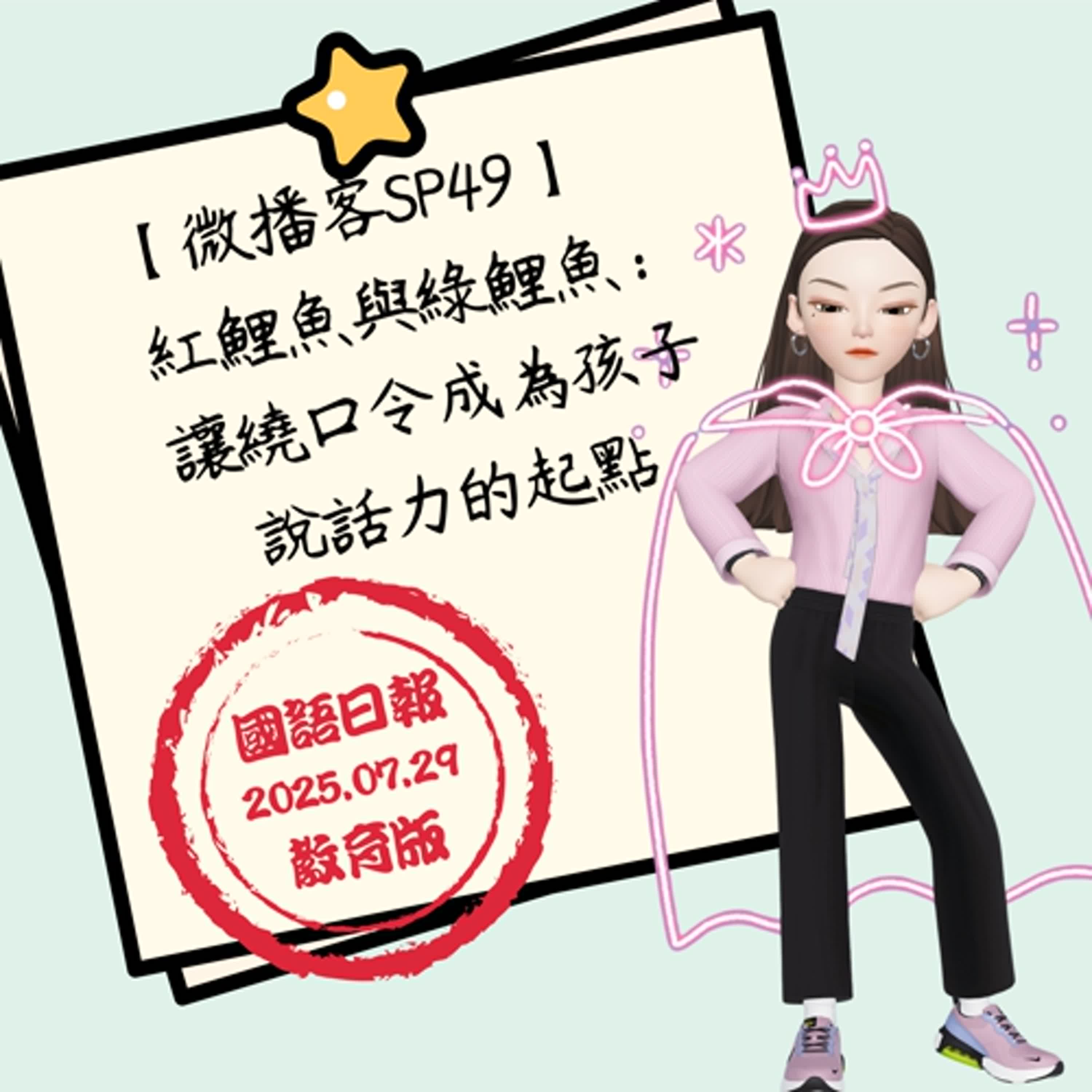 讓我們一起,從一串鯉魚開始,點亮孩子的語文冒險。歡迎留言給小金姐姐,也歡迎繼續收聽小金姐姐的微播客七分鐘短講,我是小金姐姐,我們下次見囉,拜拜。